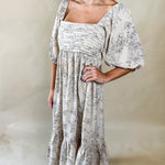 Romantic and timeless, this neutral floral maxi dress is made for all your special moments. From Sunday brunch to fall family photos, it’s as effortless as it is elegant.