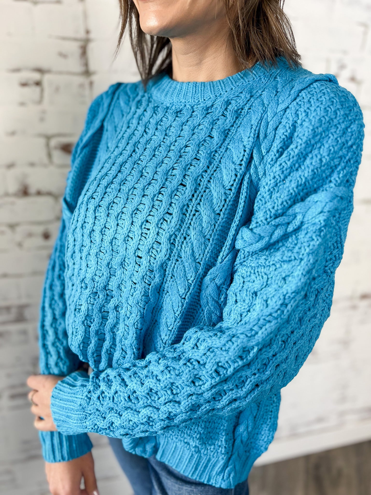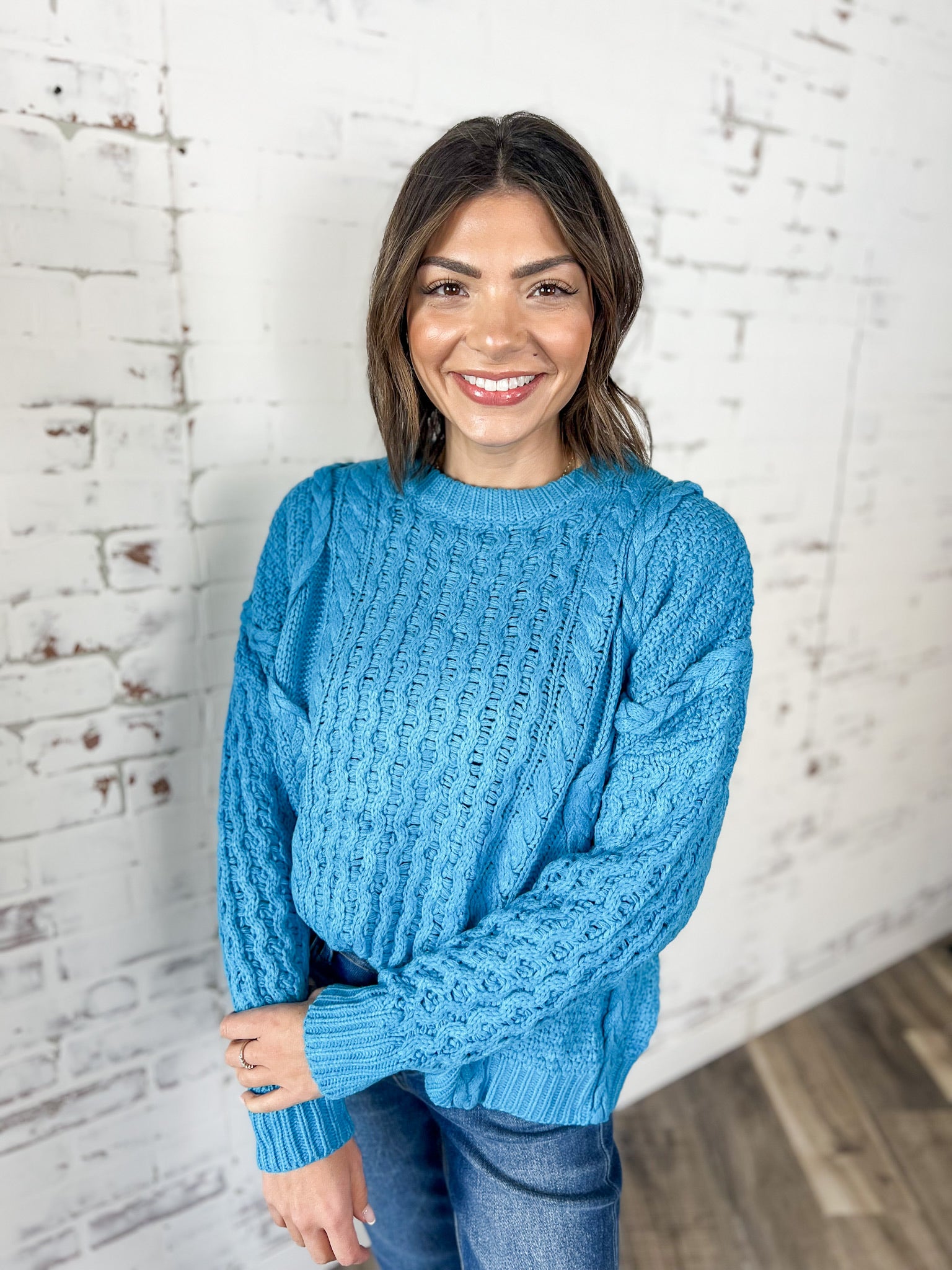 This mixed braided cable knit sweater is the kind of piece that makes a simple outfit feel intentional. The textured knit adds visual interest while the relaxed silhouette keeps it comfortable and easy to wear. It’s perfect for everyday plans when you want something warm, cozy and still effortlessly styled.