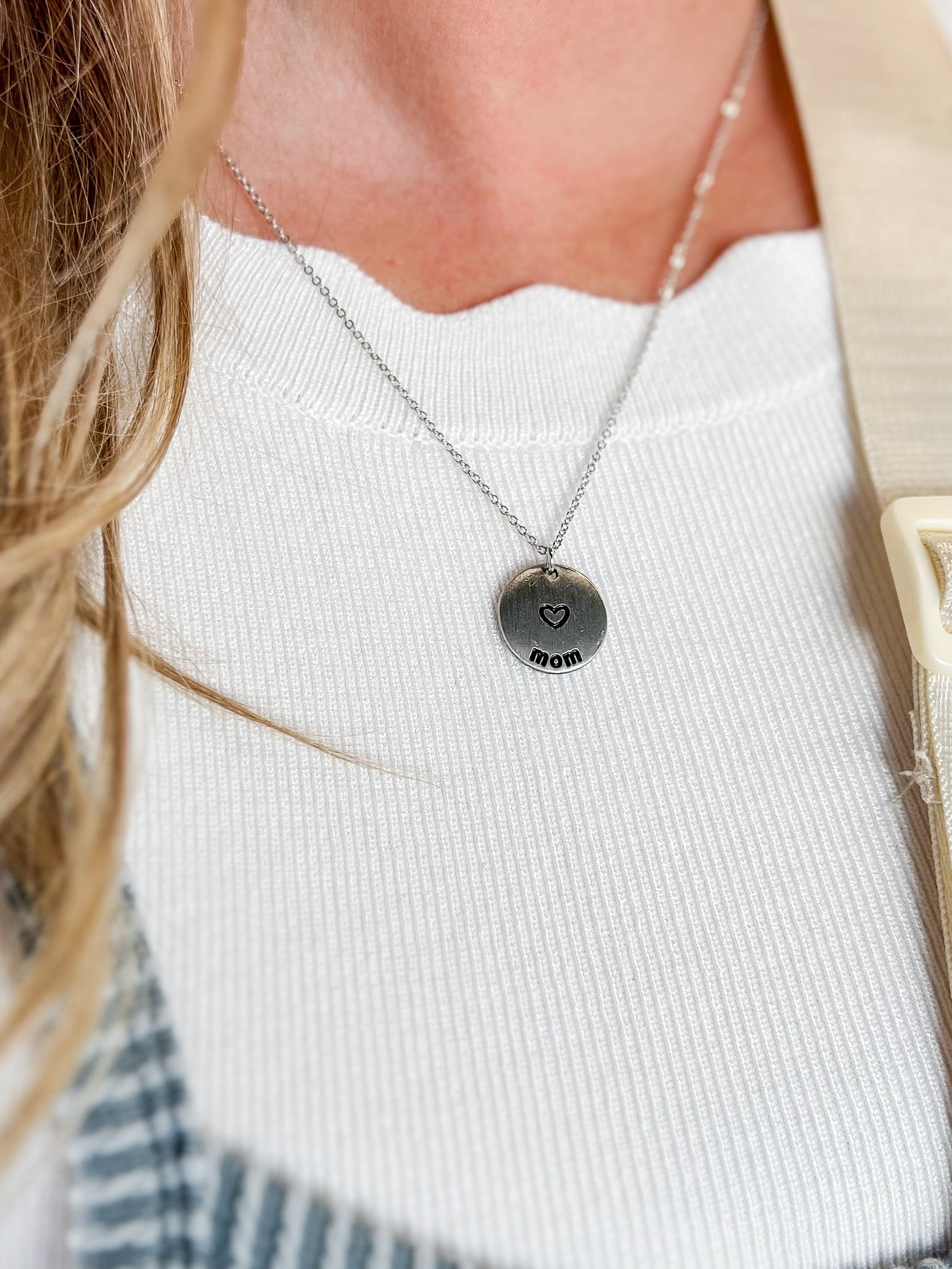 Celebrate mom with our simple yet elegant Mom Necklace. Available in both gold and silver, this necklace is the perfect gift idea for any occasion. Show your appreciation and love with this beautiful and thoughtful necklace.