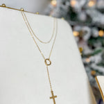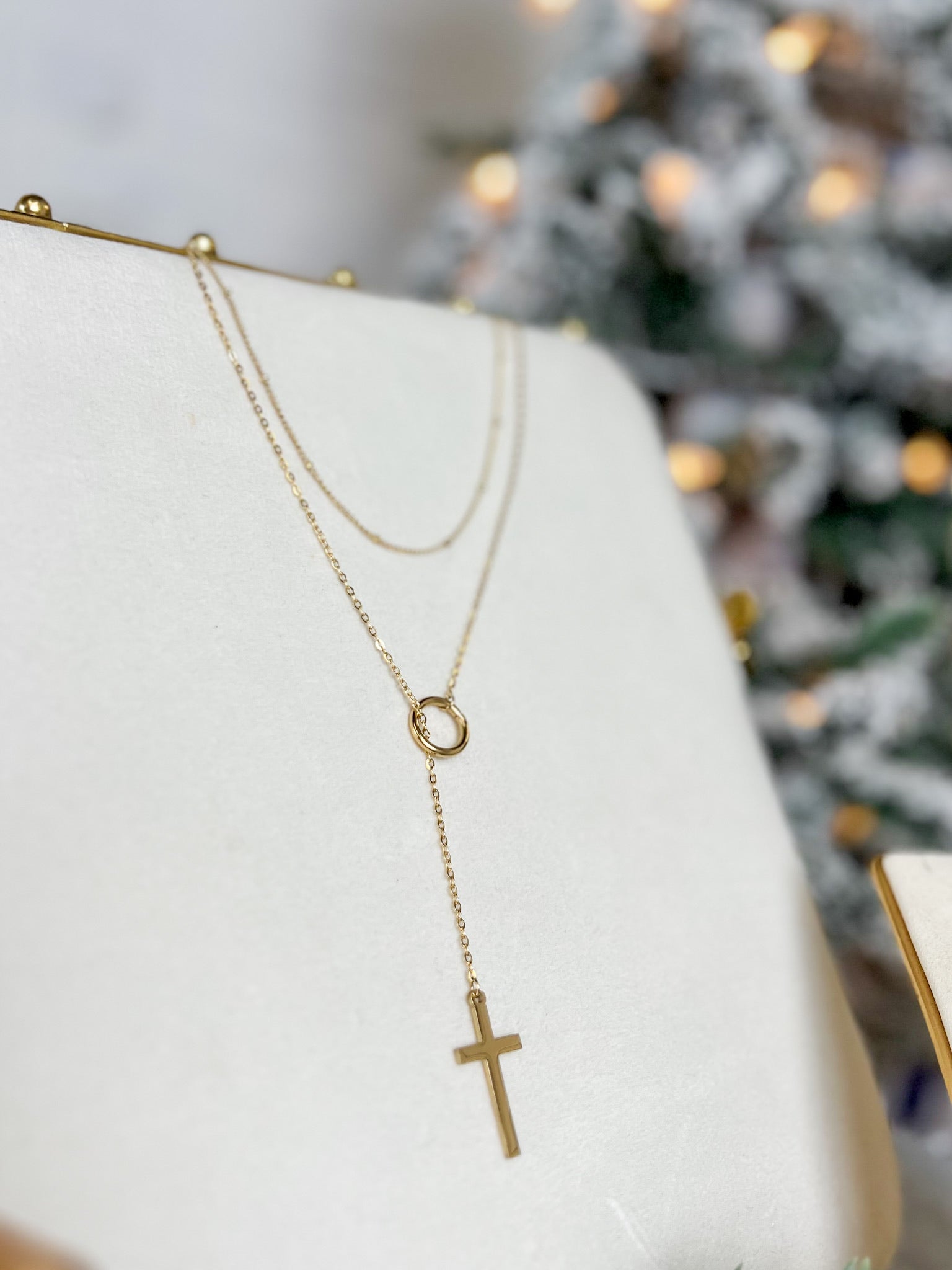 A delicate lariat necklace with a simple gold cross that makes a subtle, meaningful statement. Elegant, lightweight and perfect for layering or gifting to someone who loves a touch of faith in their everyday style.