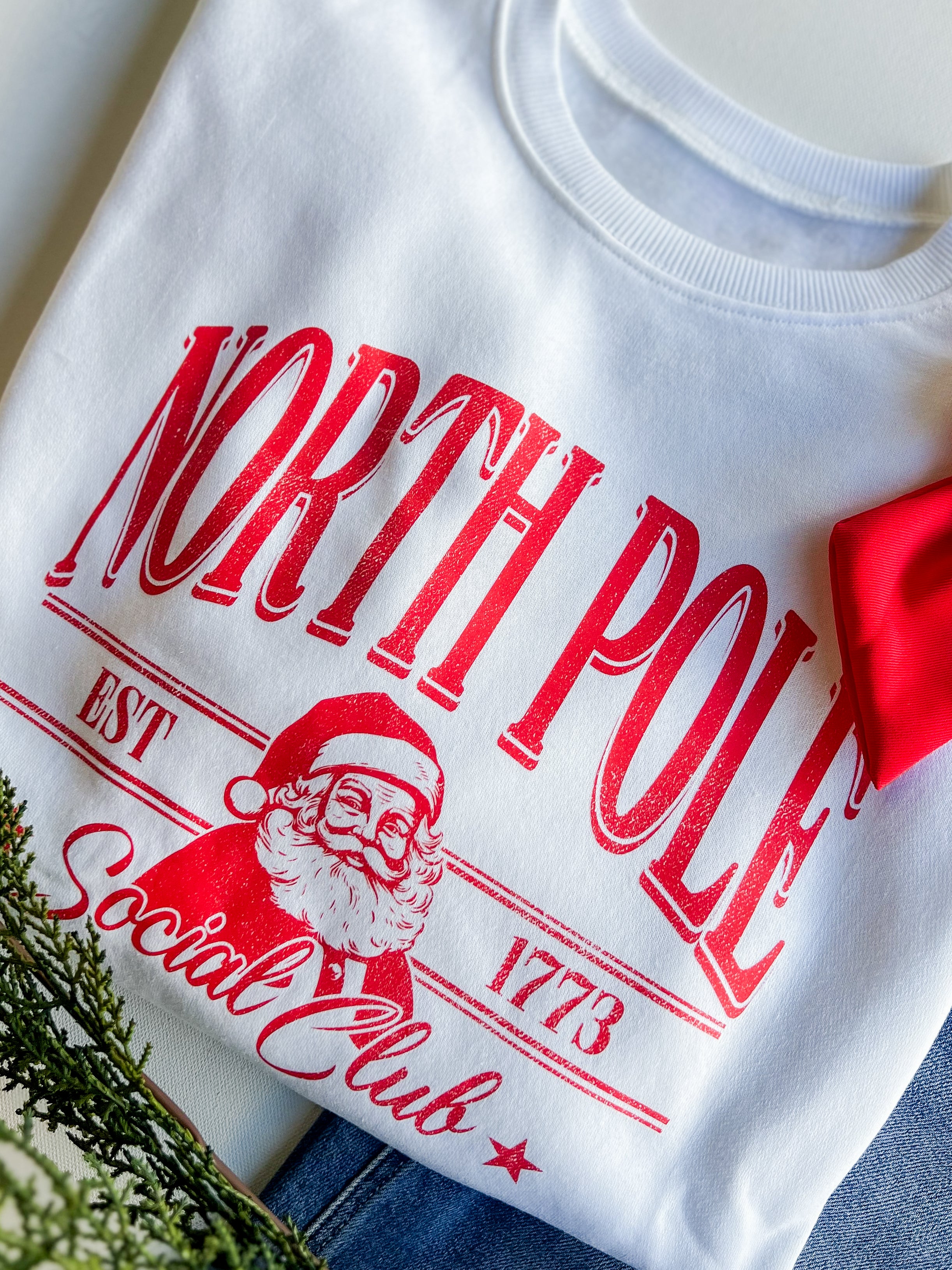 If Santa had a fan club, this sweatshirt would be the uniform. Cozy, cute and true to size, our North Pole Social Club crewneck adds the perfect pop of Christmas spirit to jeans, joggers or your festive errand-running rotation.
