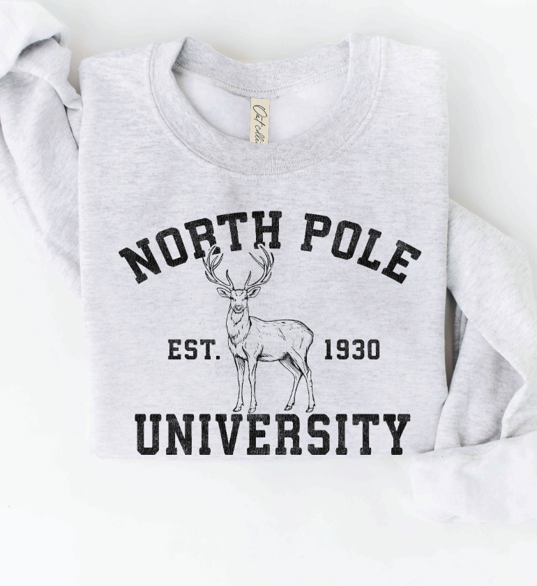 Repping the coziest campus on Earth! Classic collegiate design with vintage reindeer print — perfect for your next cocoa study session.