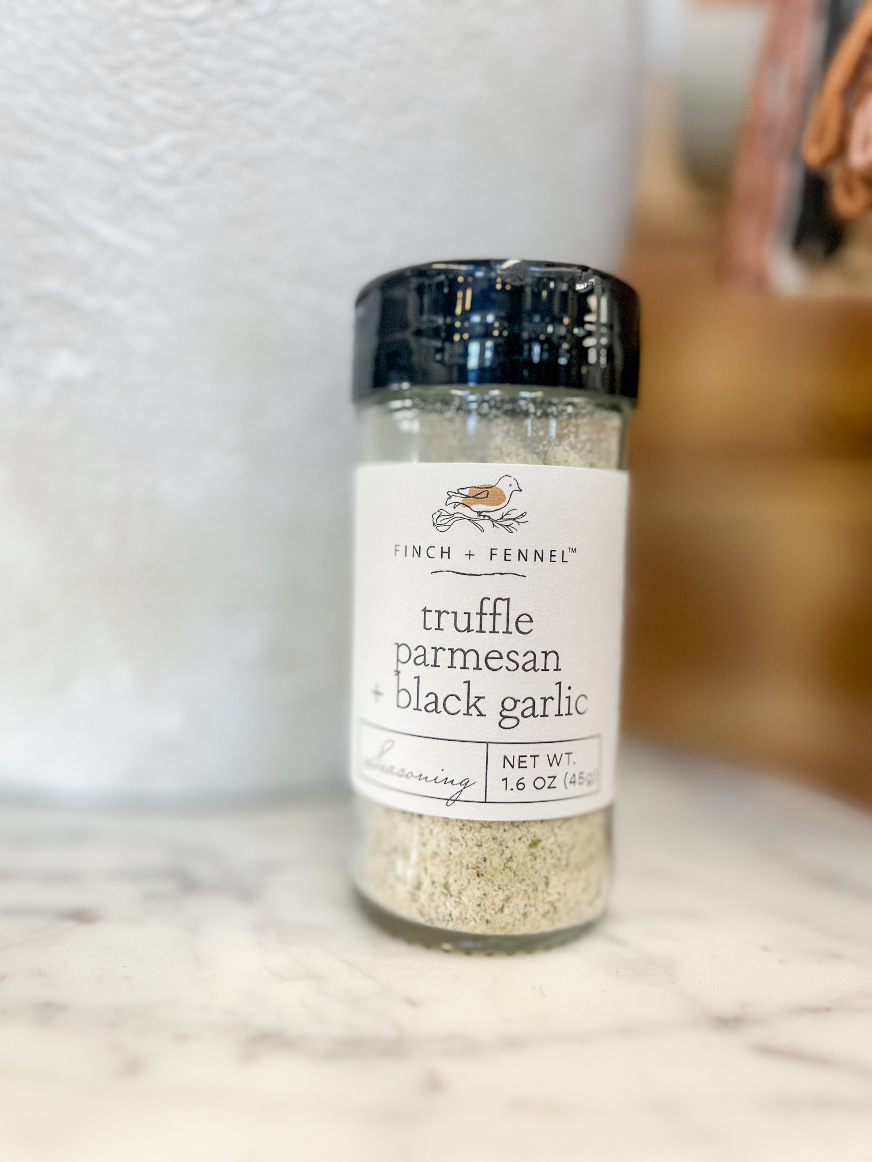 Our Truffle Parmesan + Black Garlic Seasoning is carefully crafted, combining the potent, savory flavors of truffles and black garlic with the salty tang of Parmesan cheese.