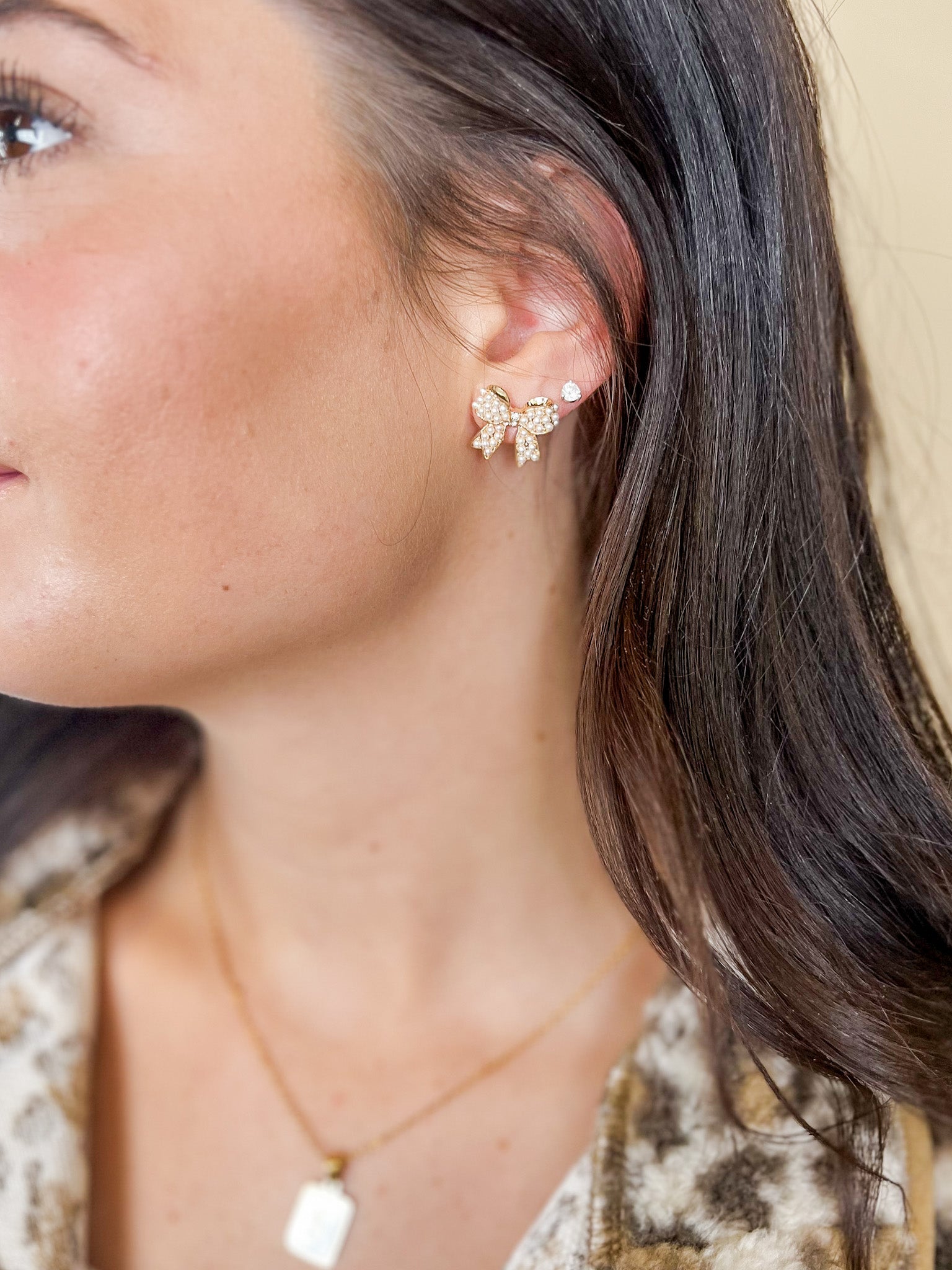 These pave bow studs are the cutest way to add a touch of sparkle to any outfit. Dainty in size but big on shine, they catch the light beautifully thanks to their crystal detailing and polished gold-tone finish. They’re the perfect mix of feminine and fun — ideal for holiday parties, family photos, girls’ nights, or gifting to someone who loves a little extra shimmer.