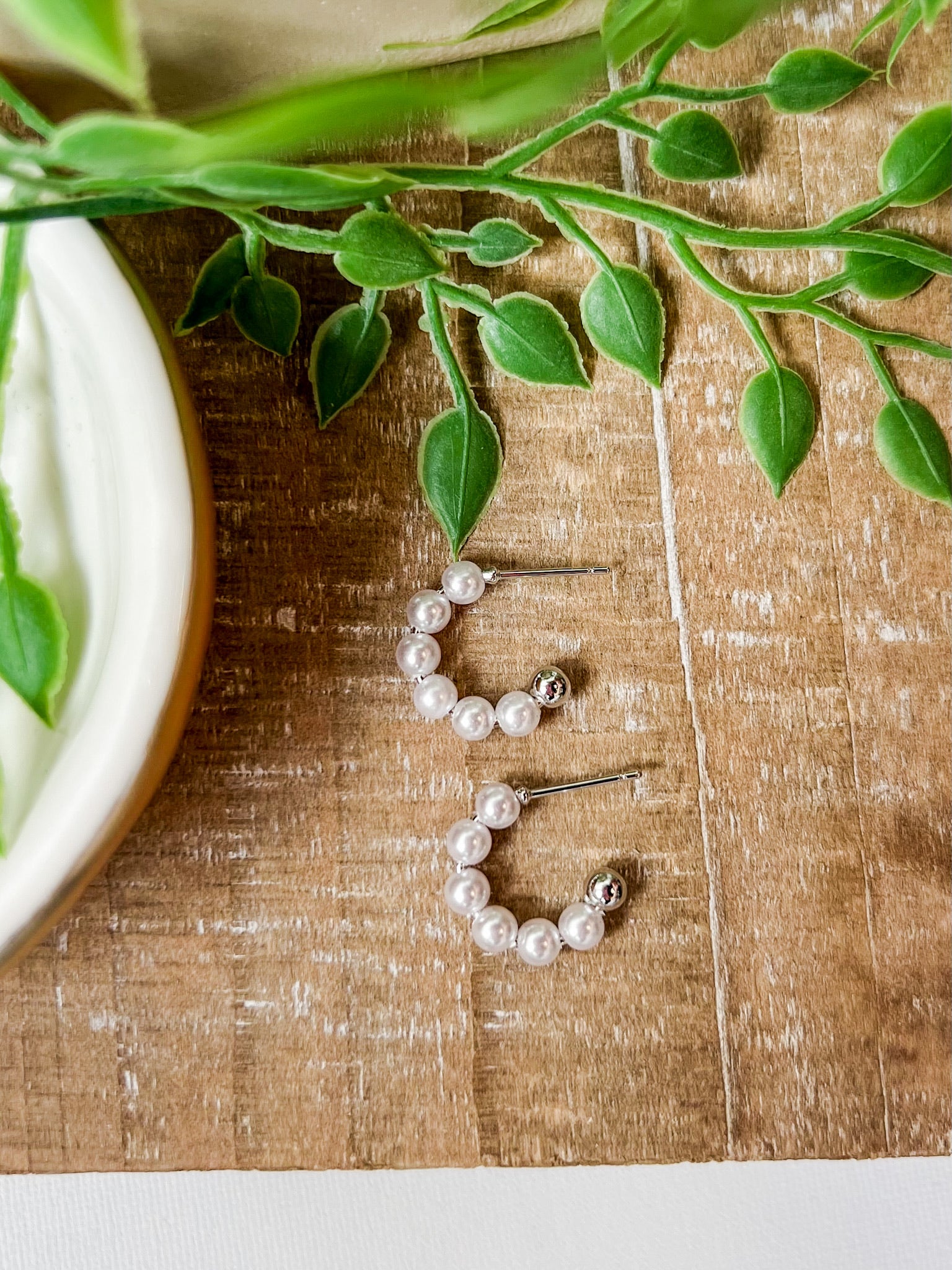 "Add a touch of elegance and versatility to your look with these small pearl hoop earrings. Perfect for any occasion, these earrings will elevate your style game! (Pearl-fect for all your outfits!)"