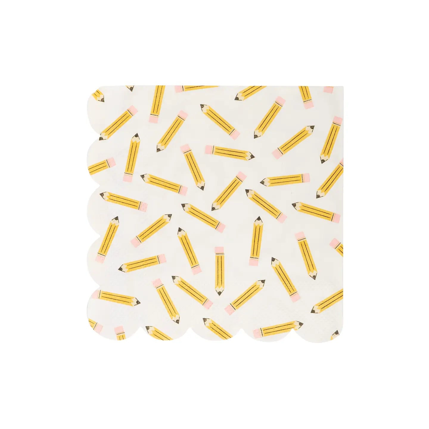 Jazz up your back to school party with our napkins! Featuring a playful pencil pattern, these napkins will add a touch of fun to your event. Perfect for any school-related occasion, these napkins are sure to put a smile on everyone's face. Don't forget to grab some for your next study session, too! • 24 5 x 5 inch paper napkins