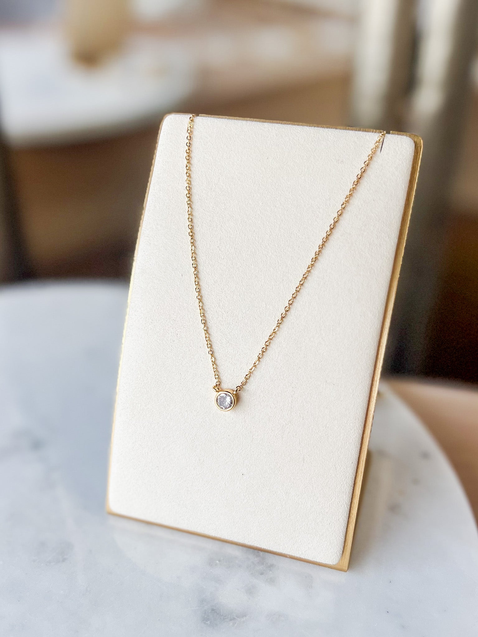 Simple but stunning, this dainty gold necklace features a single gem that catches the light beautifully—effortless sparkle for every day.