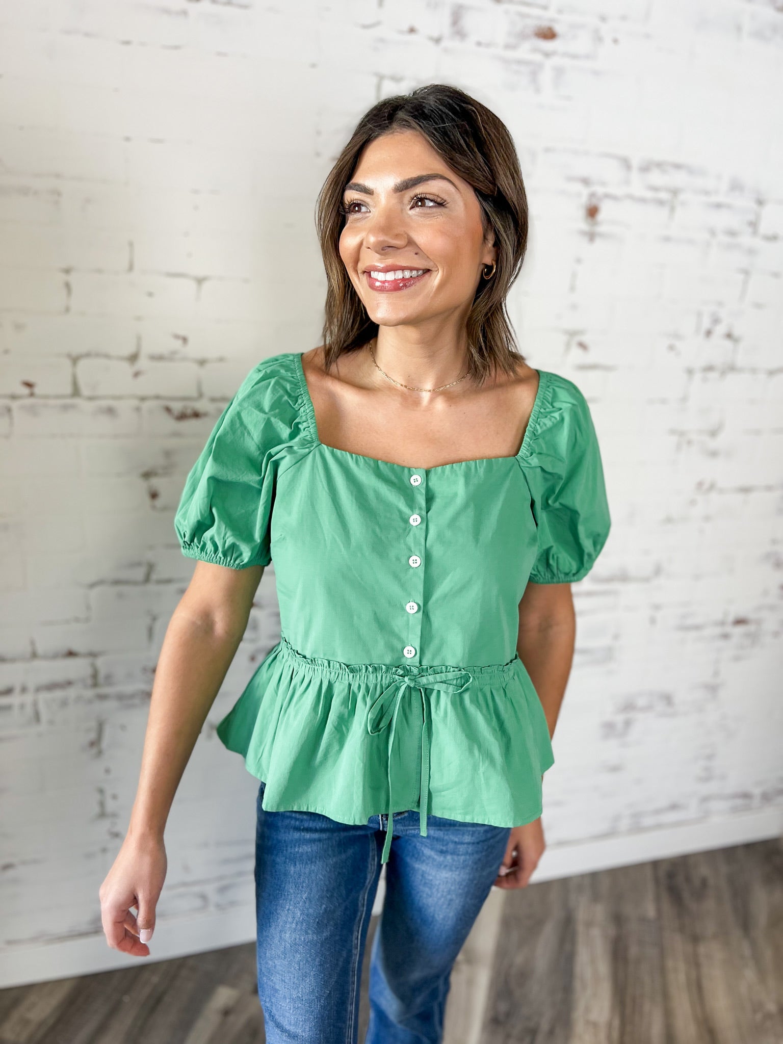 This peplum puff sleeve blouse is one of those pieces that instantly elevates your look without sacrificing comfort. The structured bodice paired with soft sleeves creates a flattering, wear-anywhere silhouette that works for busy days and casual plans alike. It’s polished enough to feel put together but still relaxed enough for real life.