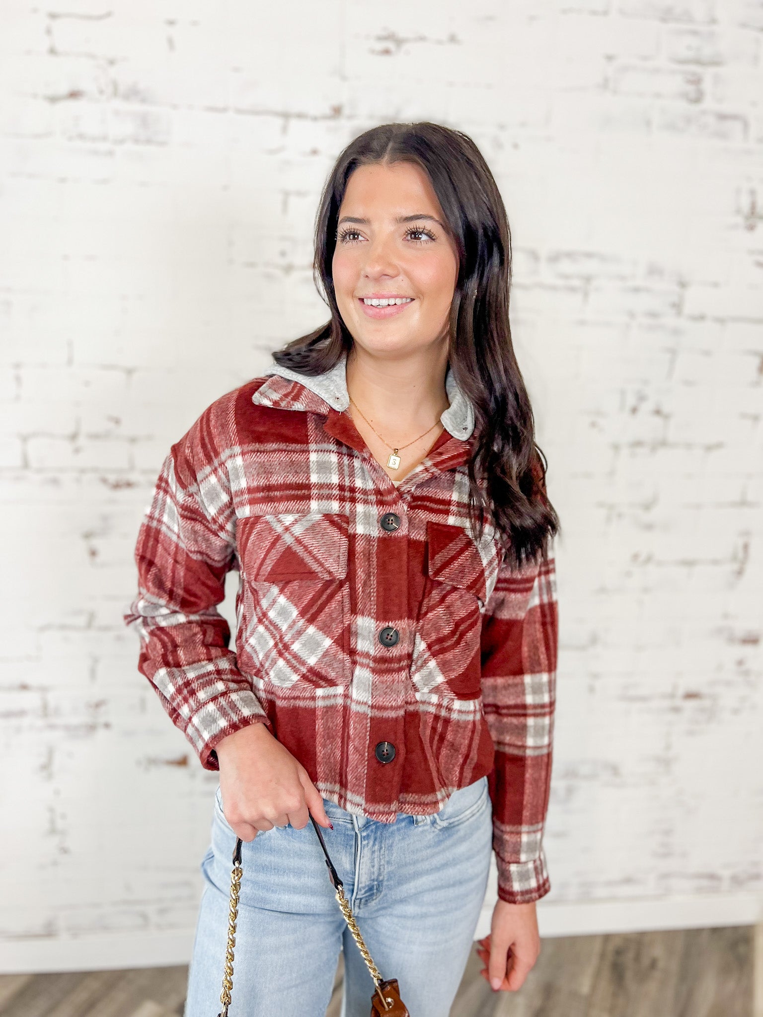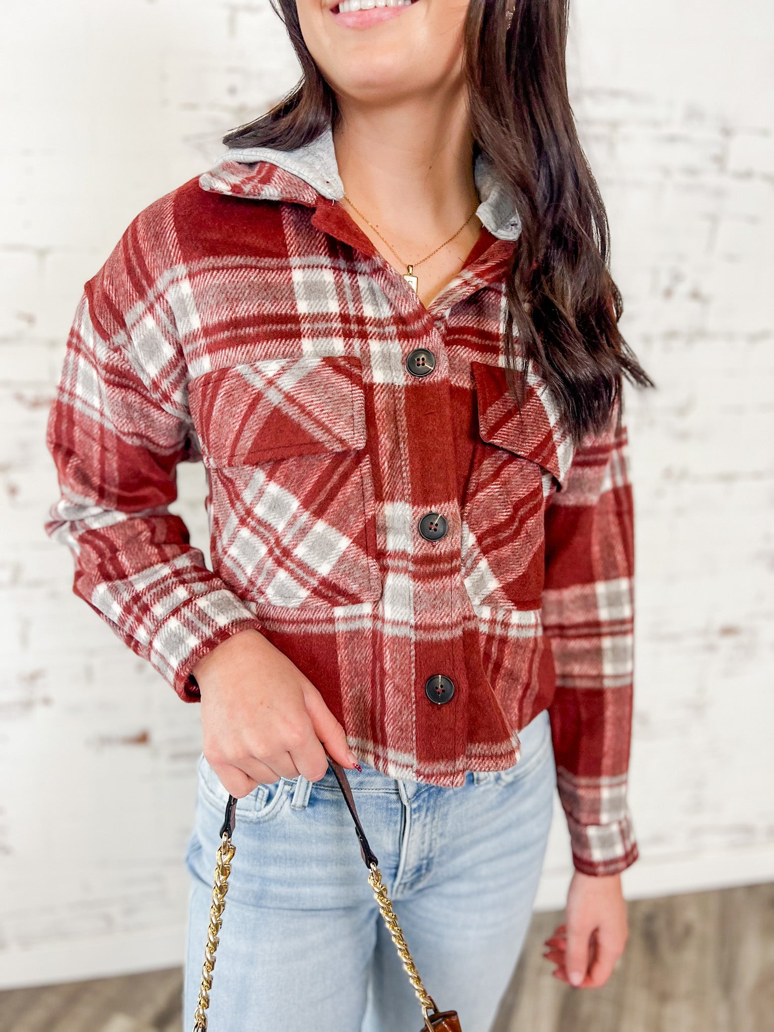 A relaxed shoulder, functional buttons, and chest pockets give it that classic shacket silhouette, while the cropped hem keeps things modern and flattering. Made from soft 100% polyester that feels warm without the bulk.