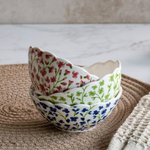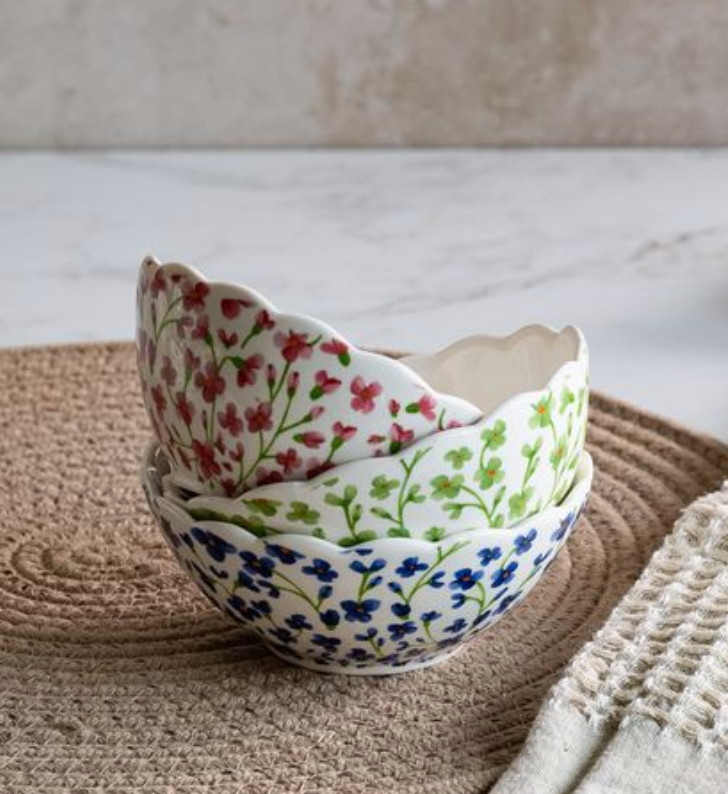 The Posey Bowl is a charming blend of soft color and classic detail, designed to add a little personality to everyday spaces. The scalloped edge and delicate floral pattern give it a vintage-inspired feel while still being easy to mix with neutral décor. The slightly larger size makes it especially versatile for both styling and light use.