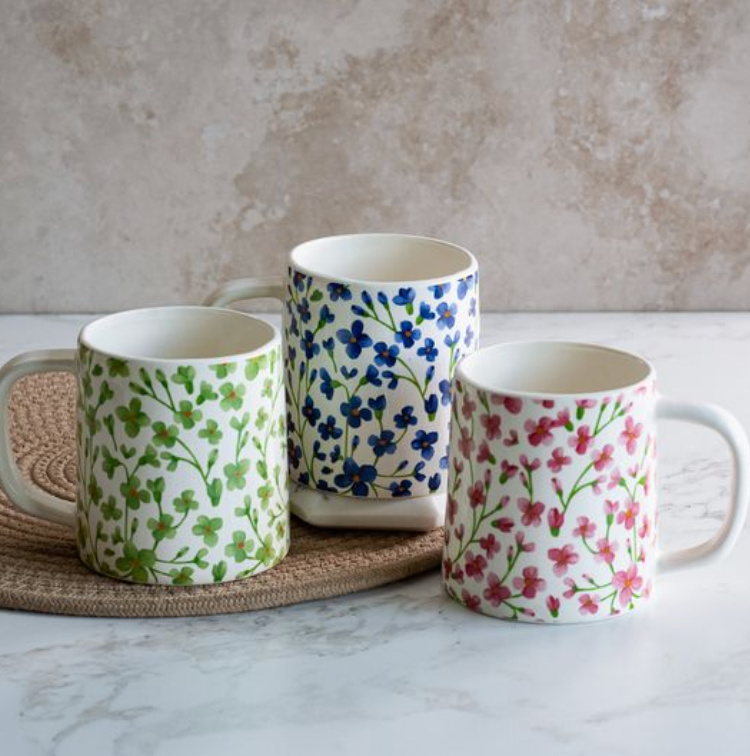 The Posey Mug adds a cheerful, collected feel to everyday moments. Each mug features a delicate floral pattern that feels charming without being overly sweet, making it an easy favorite for coffee bars, open shelving, or daily use. The simple shape keeps it timeless while the floral details bring just enough personality to stand out.