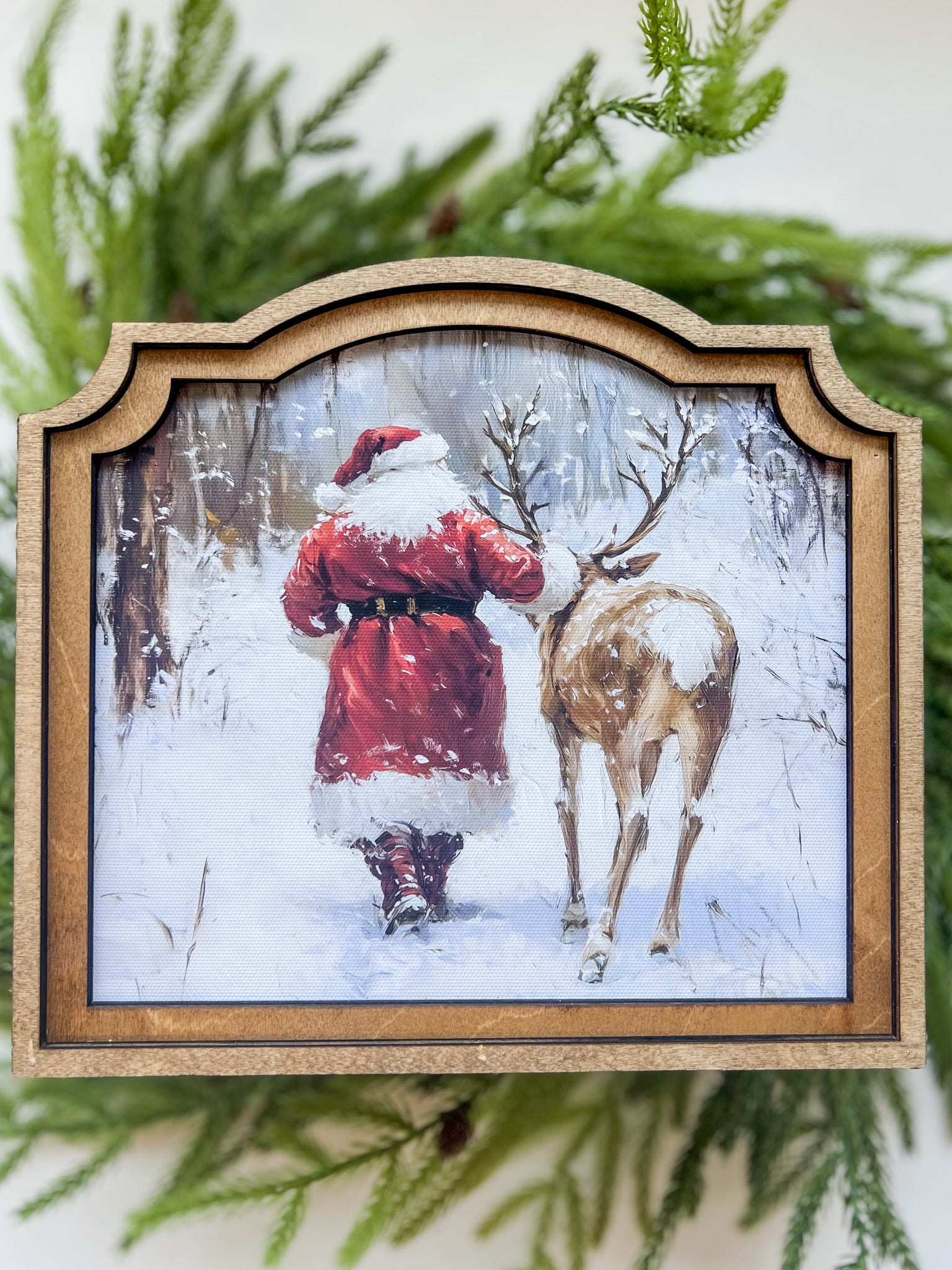 9 x 10" Provincial Santa With Reindeer Framed Art