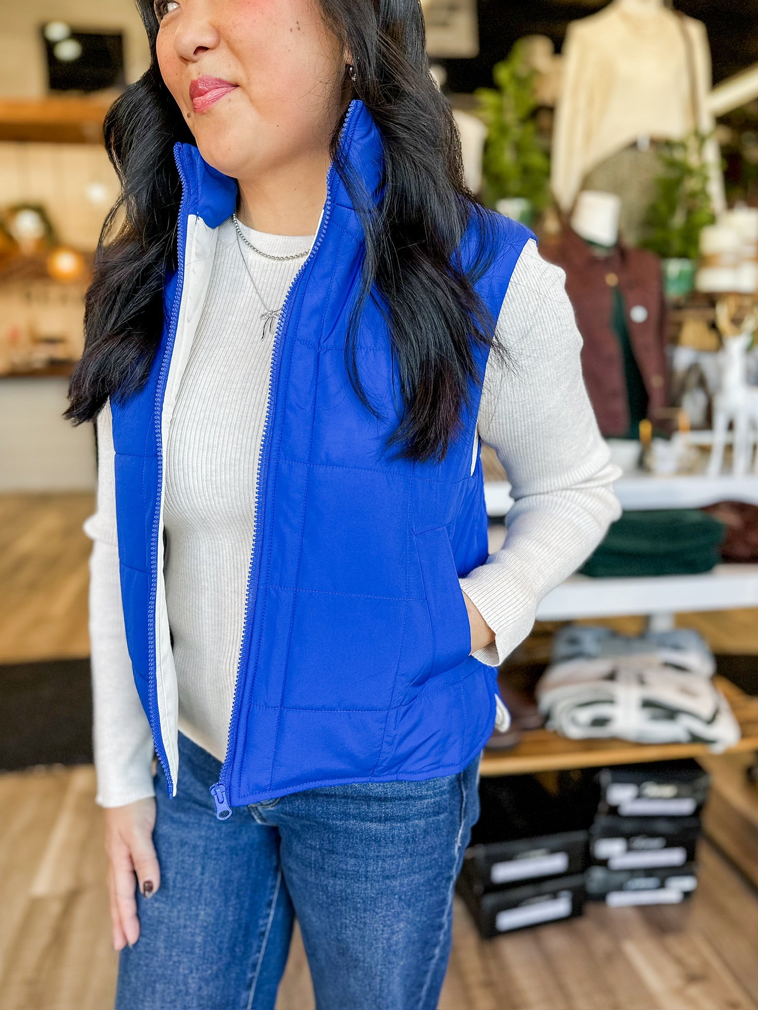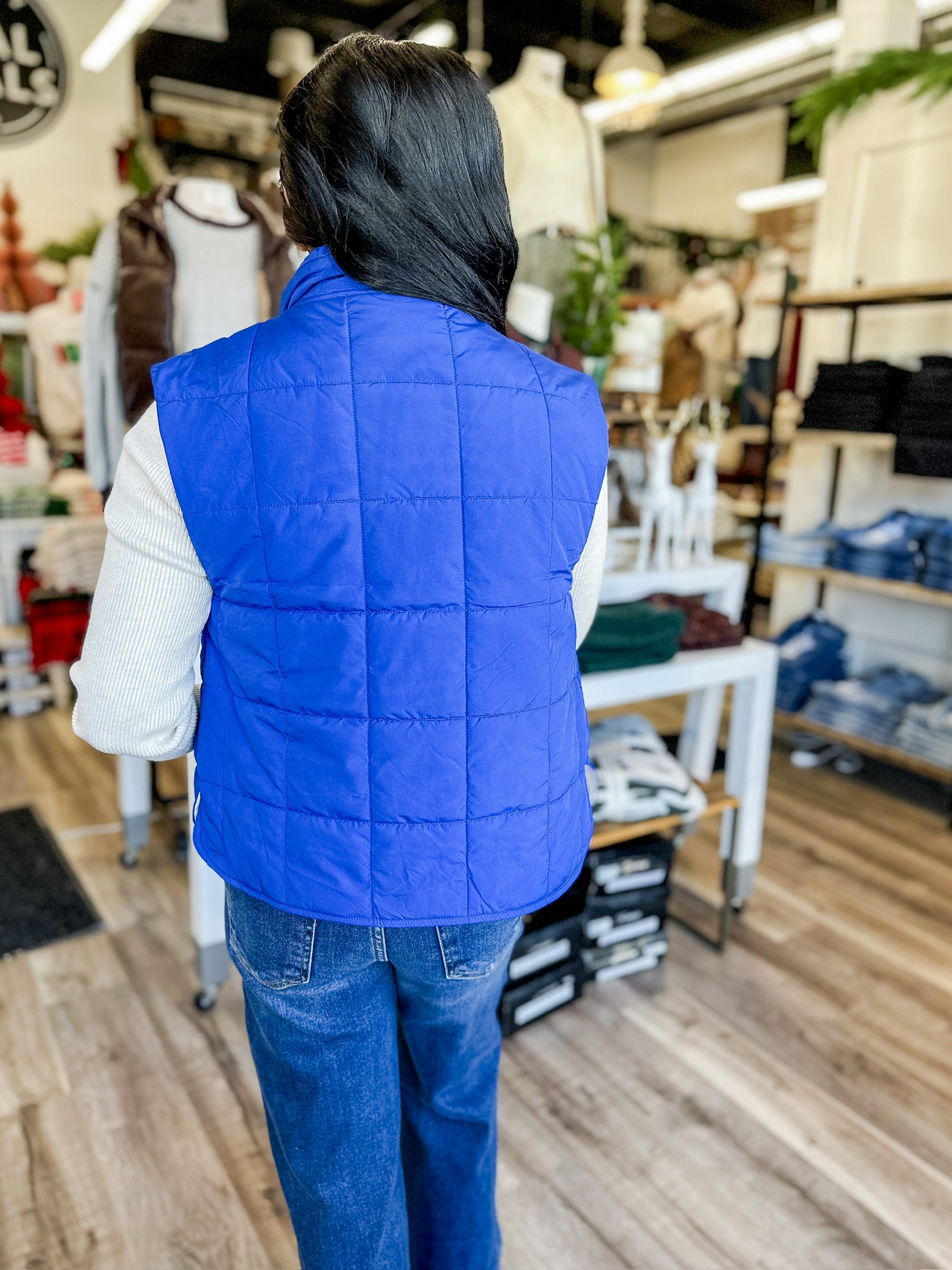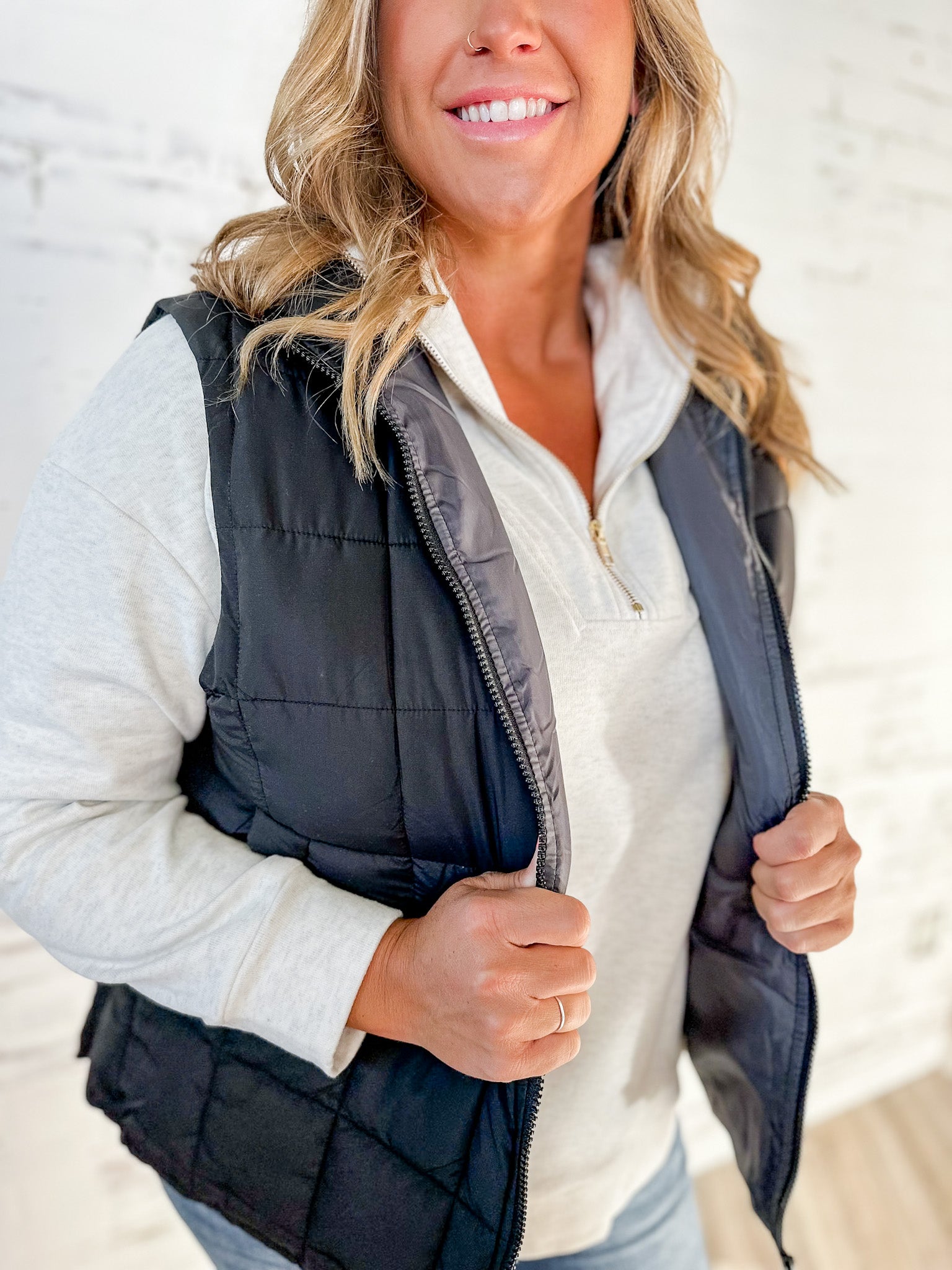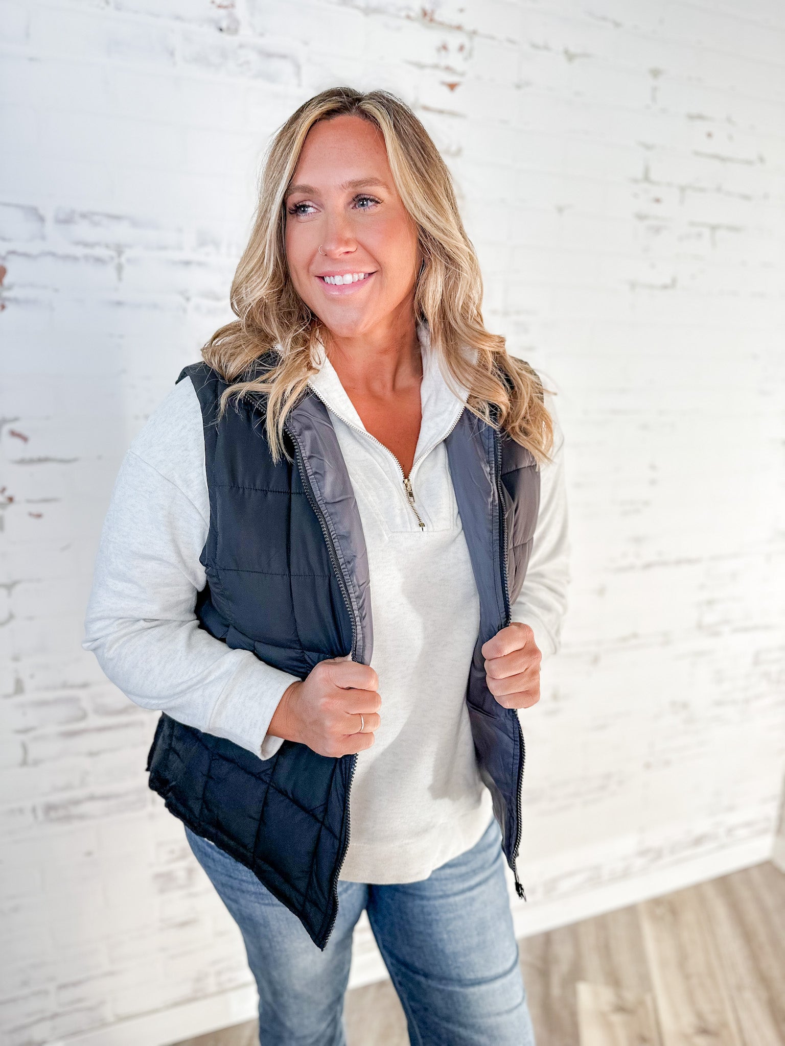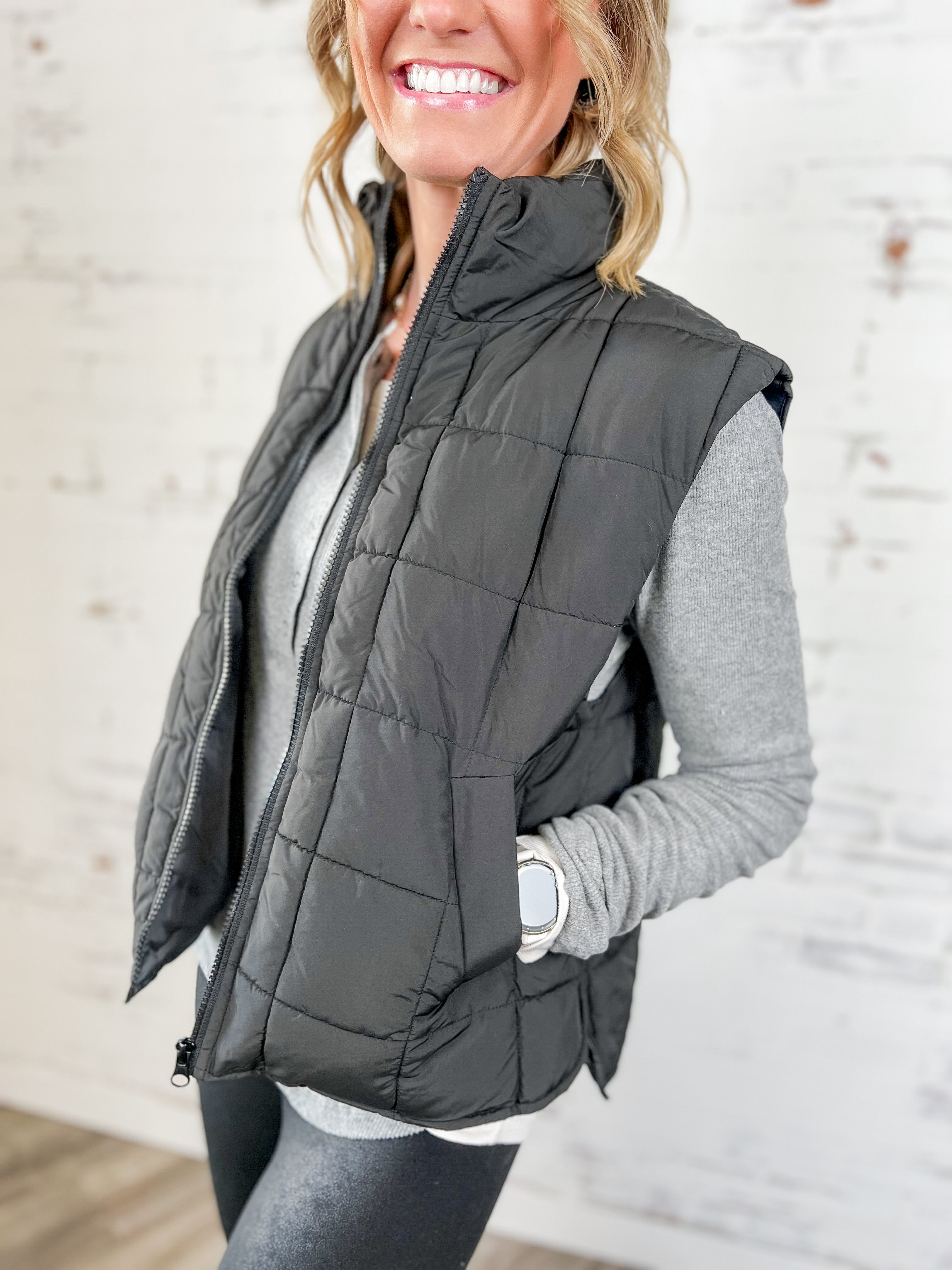 The Puffer Vest features a full-zip front, soft quilted body, and functional pockets that keep your hands warm or your essentials close. Colbie is 5'4 wearing size small.