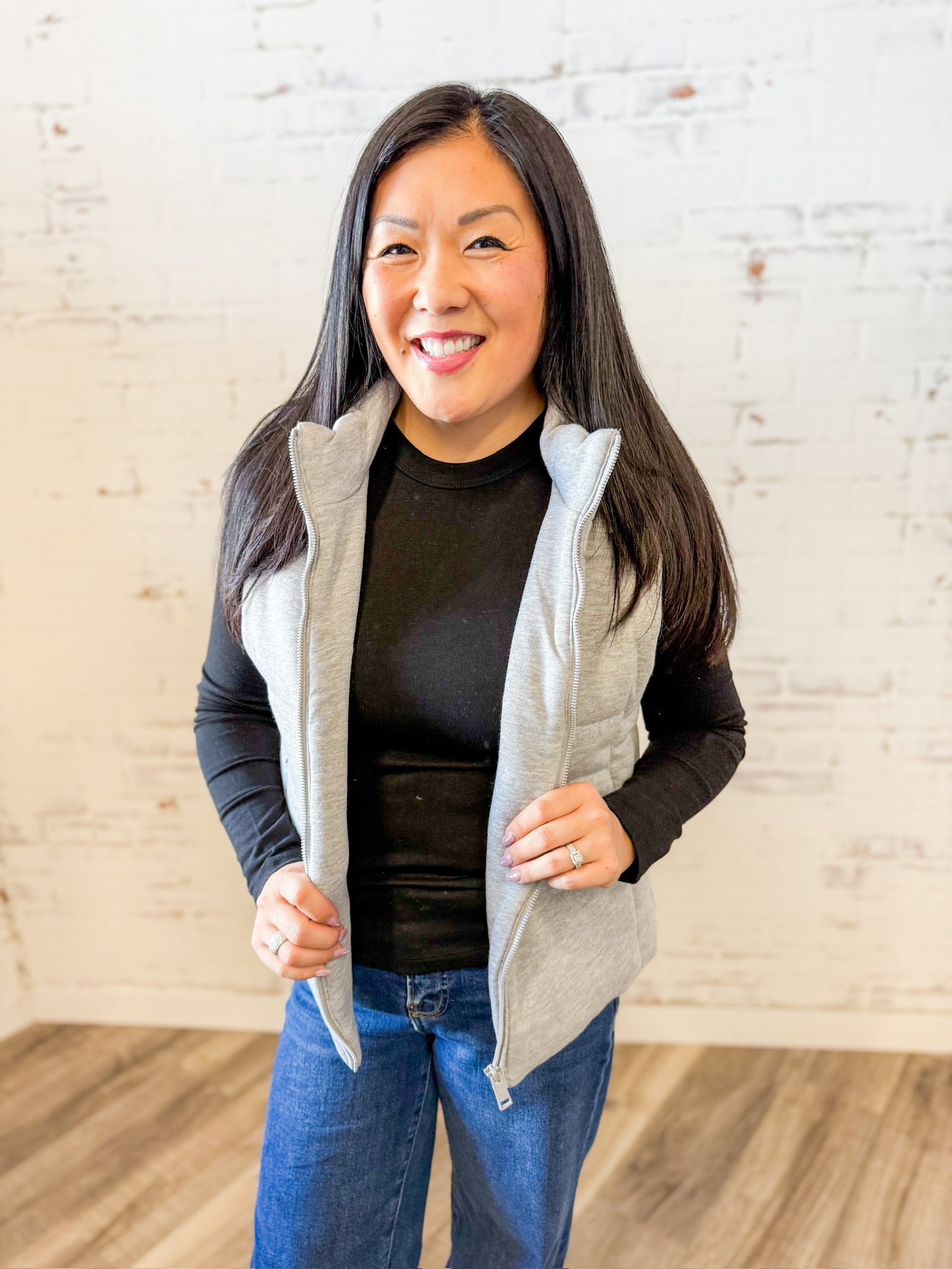 A soft, sporty layer you’ll reach for on repeat. This knit-quilted vest adds lightweight warmth without the bulk, perfect for busy days and casual layered looks.