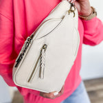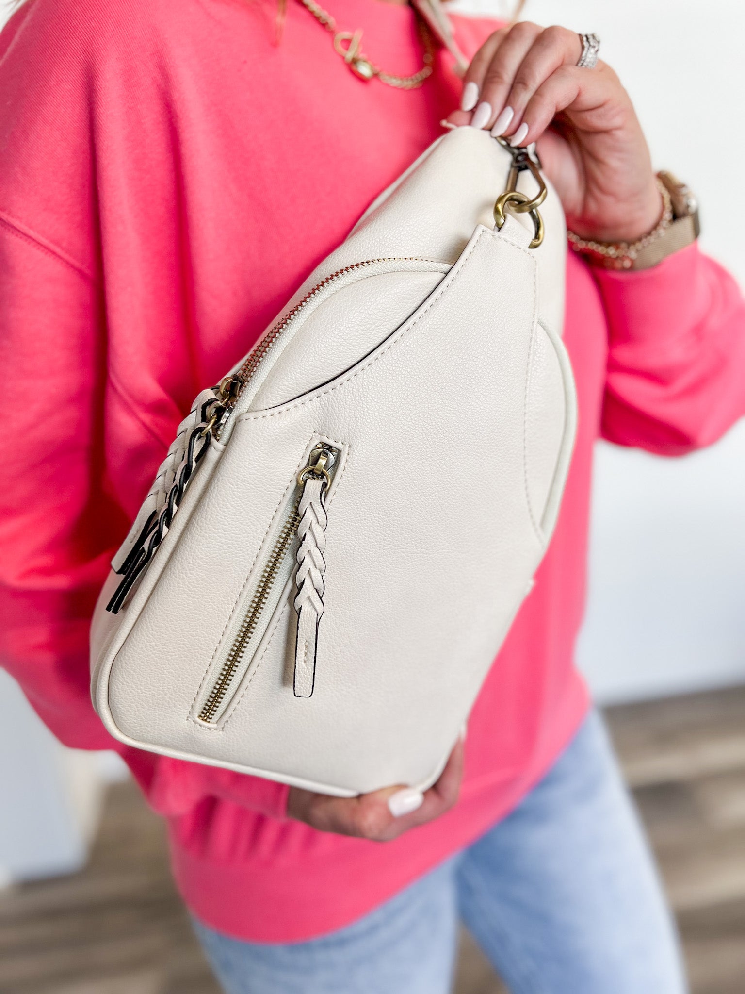 This sling bag is as functional as it is cute! With two zippered compartments, an exterior front zipper slot and adjustable sling strap, this purse has everything you need!