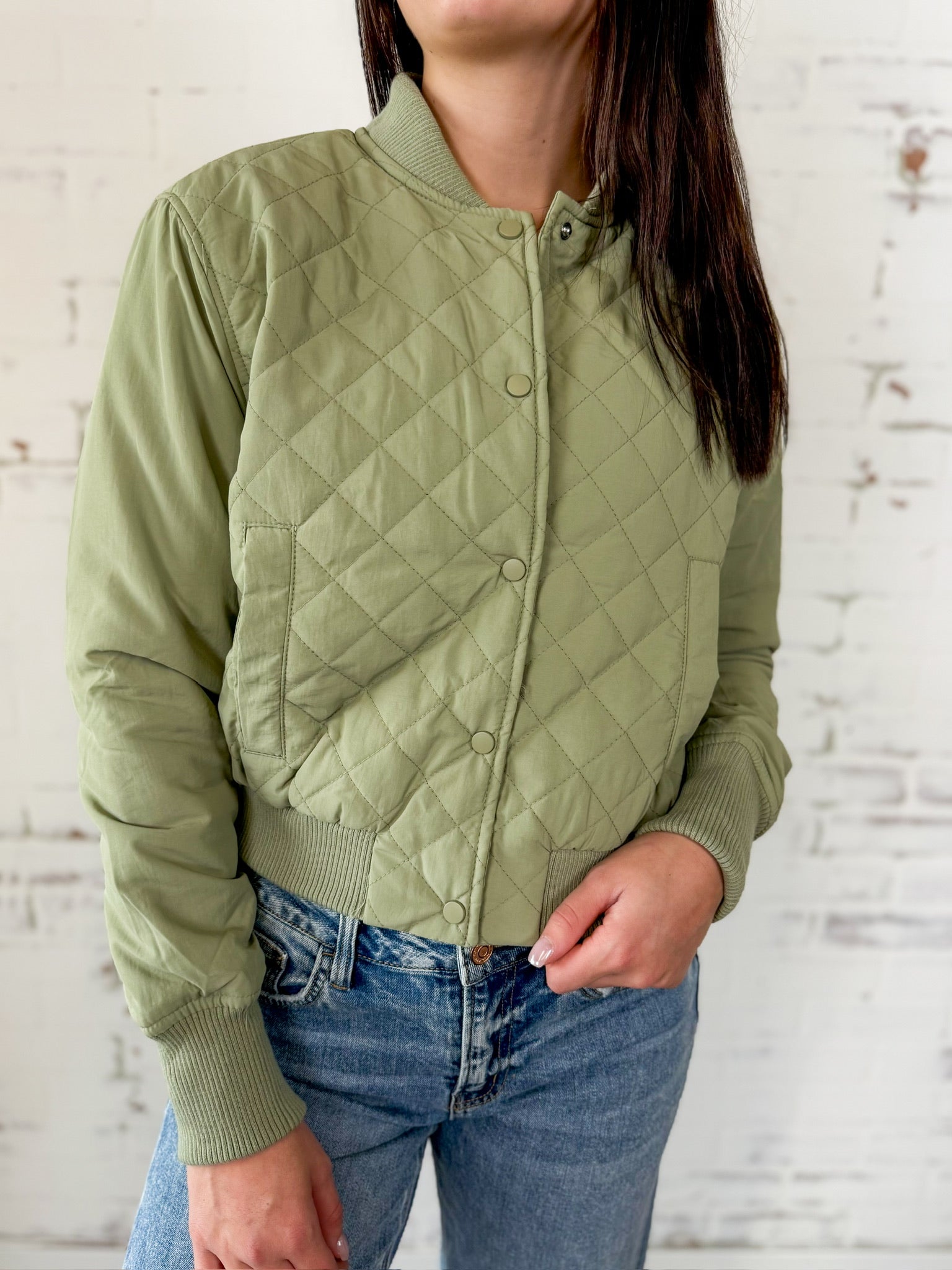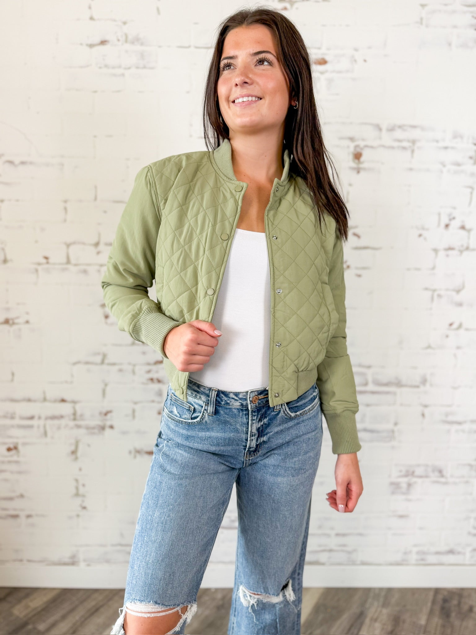 Sporty meets chic. This quilted bomber jacket features ribbed cuffs, snap buttons, and a flattering cropped cut that makes it an easy grab-and-go layer for fall. Chloe is 5'7" wearing a size small, and the fit is true to size.