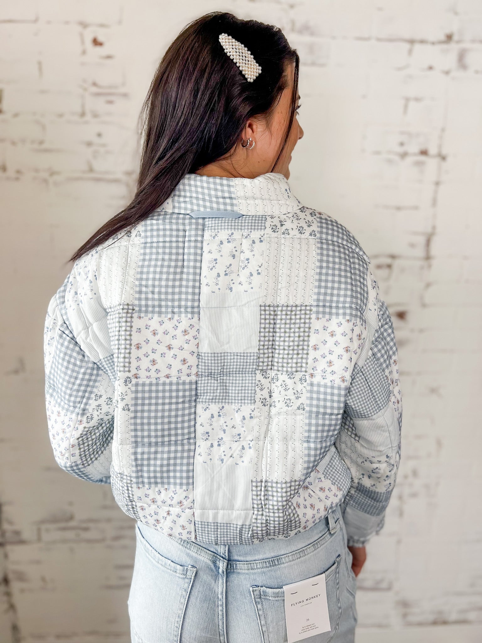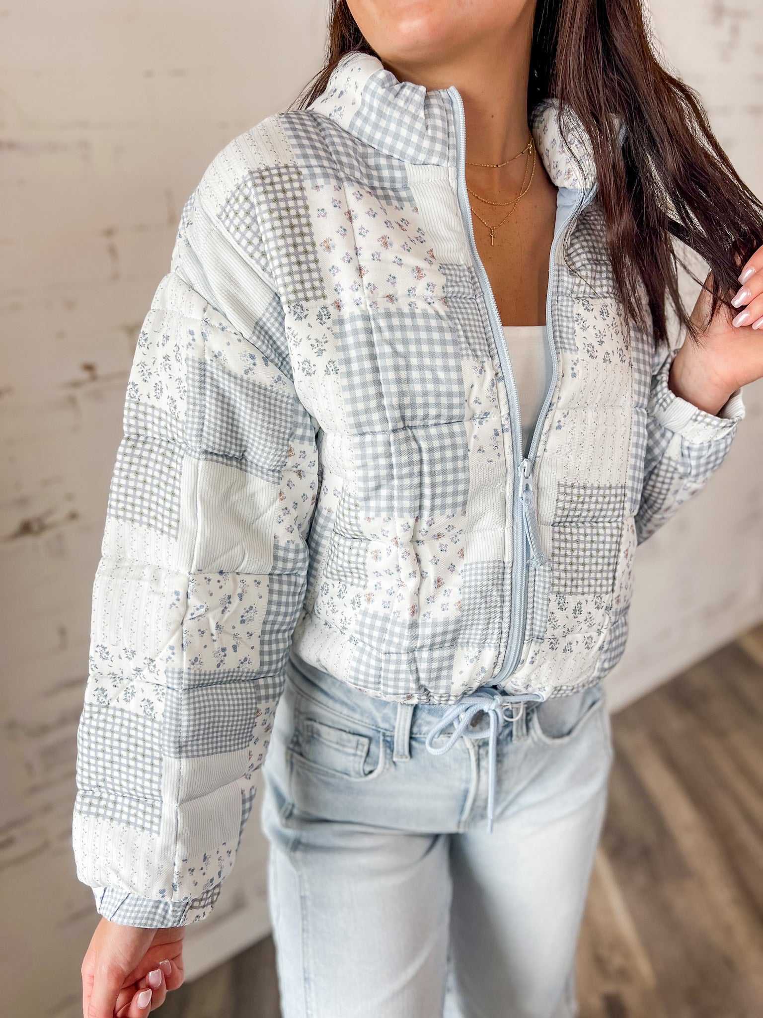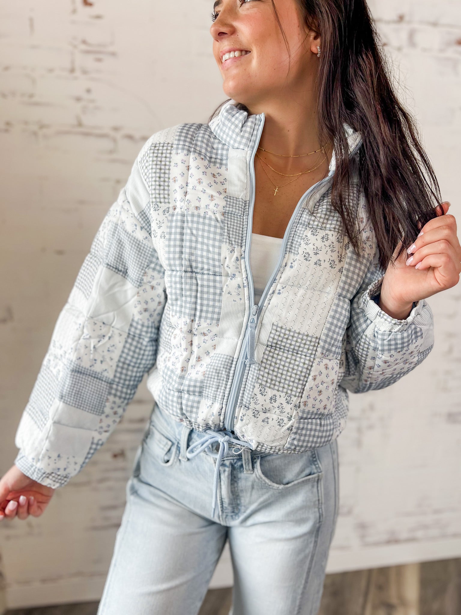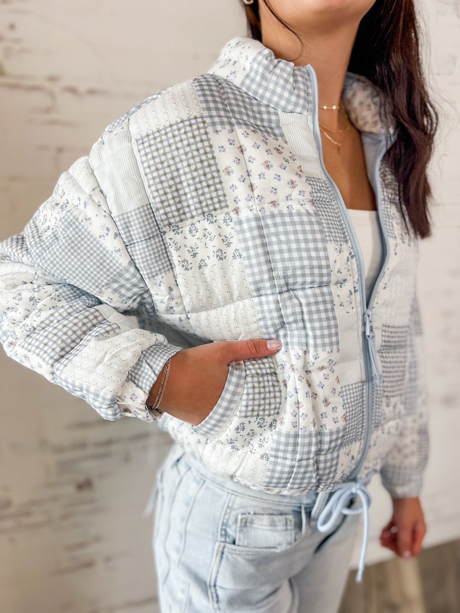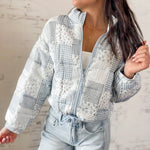 Vintage vibes with a modern twist. This patchwork quilted jacket brings all the cozy charm with its mix of florals, gingham, and soft pastels. Lightweight but warm enough for layering, it’s the perfect statement piece for cooler days. Chloe is 5'7" wearing a size small, and the fit is true to size.