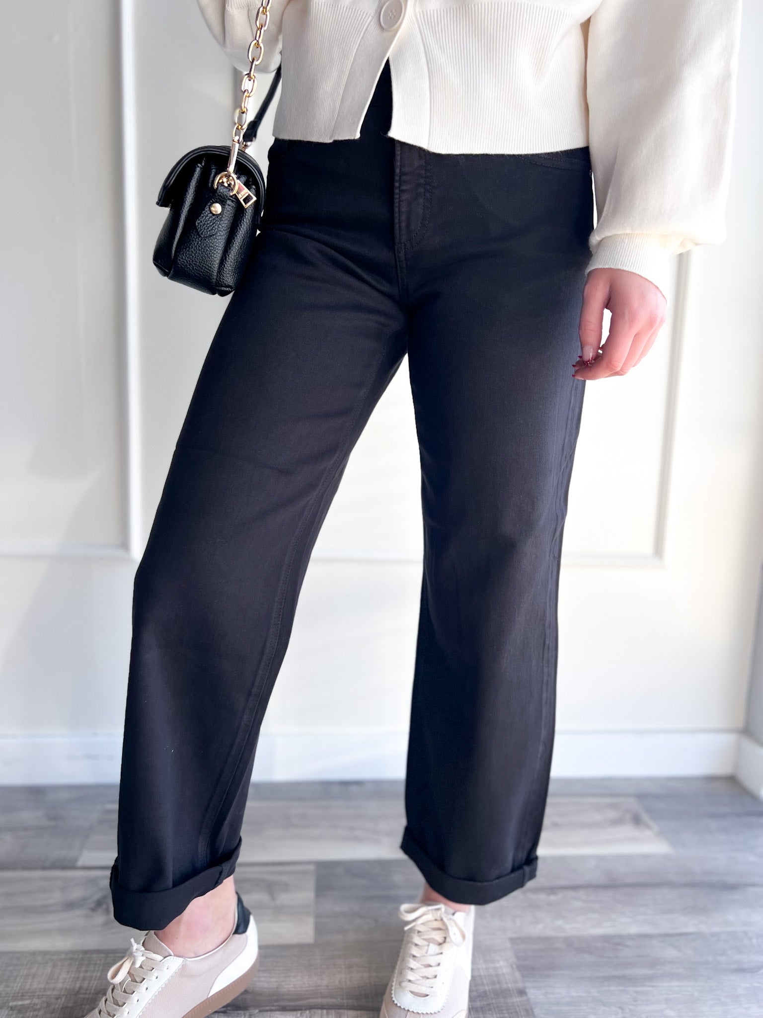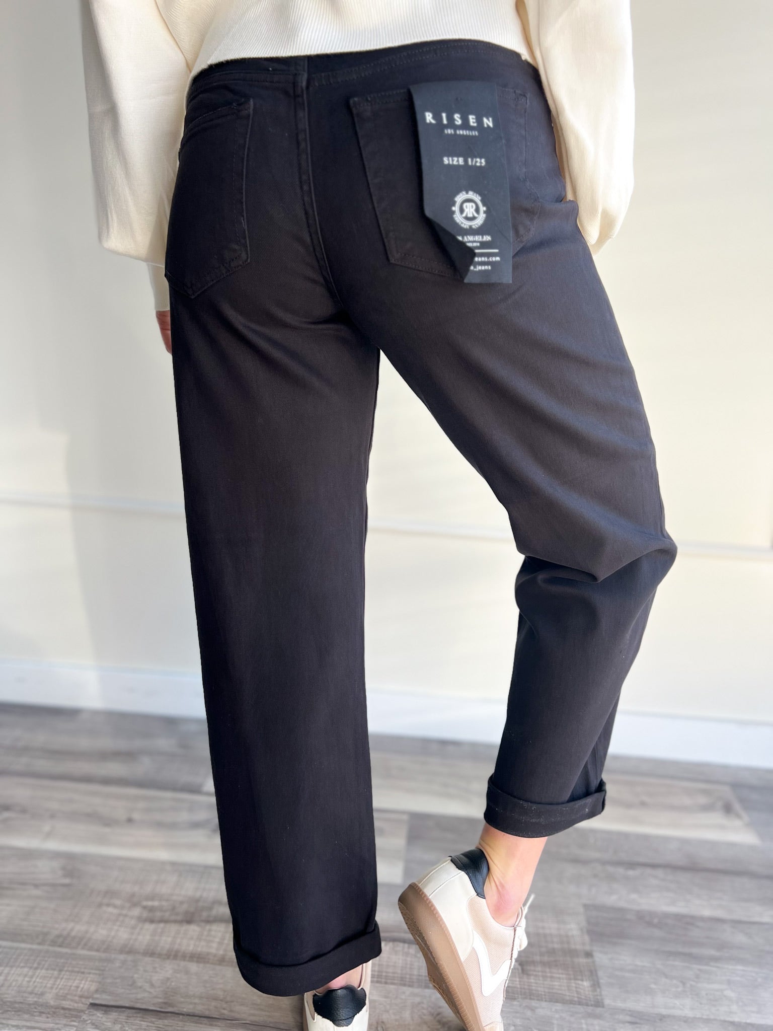Every wardrobe needs a pair of jeans that can do it all, and this Risen Relaxed Black Denim checks every box. With a straight-leg fit and a soft, lived-in feel, these jeans make everyday styling easy — from running errands to date nights. The washed black tone adds a modern edge that looks great with everything from cozy sweaters to structured blazers.