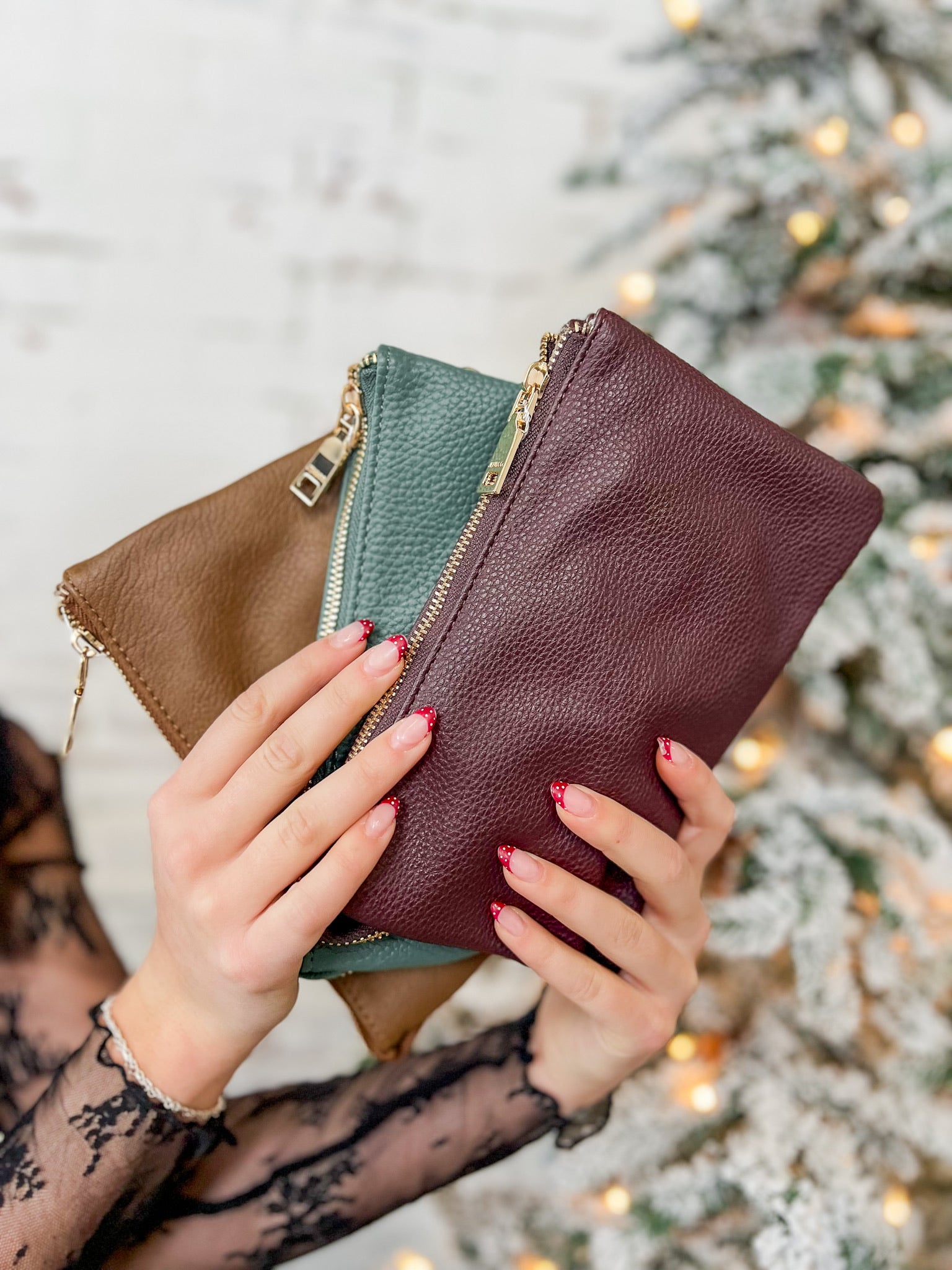 Wear it as a wristlet when you’re on the move or clip on the adjustable strap for hands-free crossbody convenience. Finished in soft vegan leather with gold or silver-tone hardware and a chic herringbone or Jen & Co. branded lining, it’s the perfect blend of style and function.