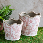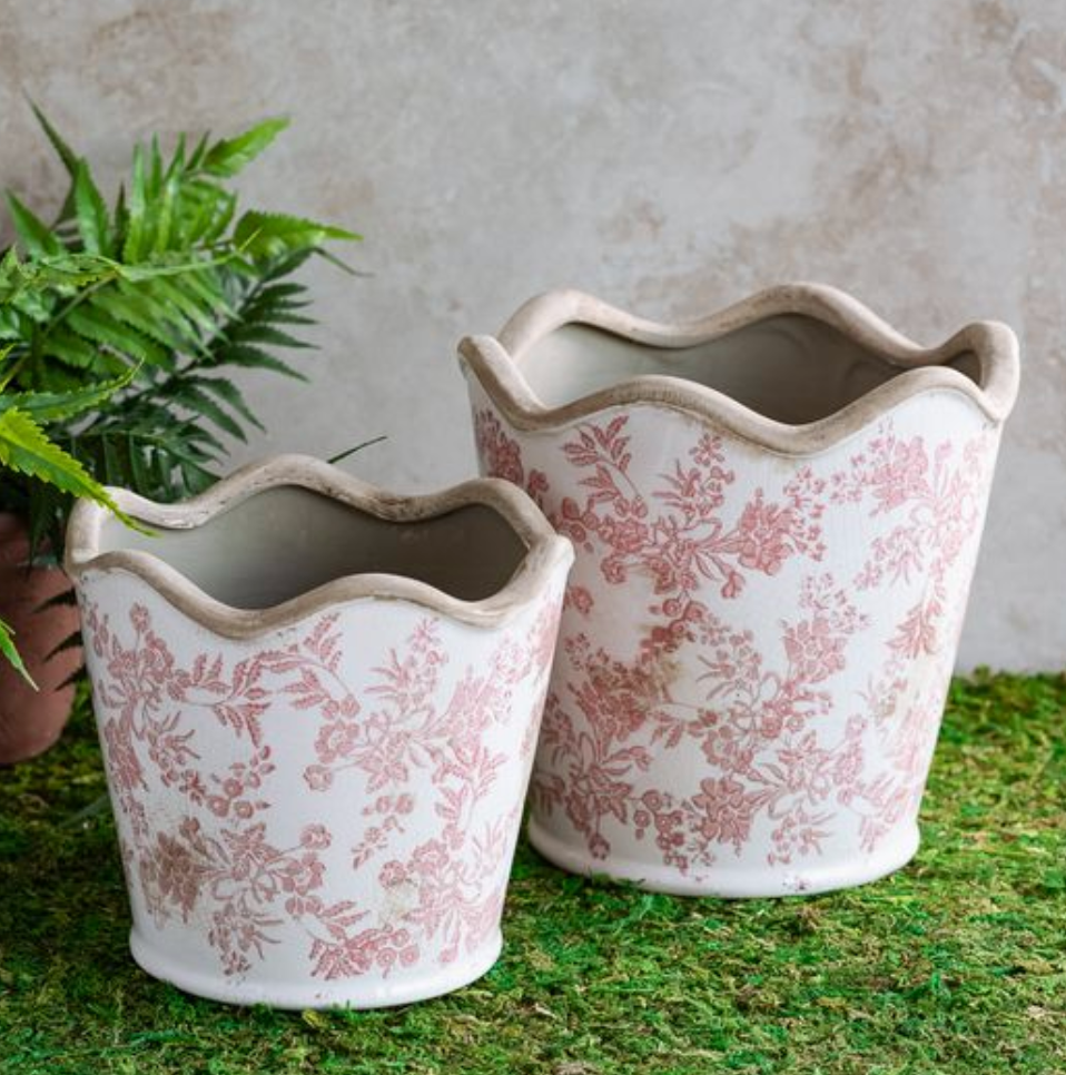This scalloped heirloom pot features a soft floral pattern and gently curved rim for a timeless, collected feel. Perfect for faux greenery or as a decorative accent on shelves, counters or tabletops.