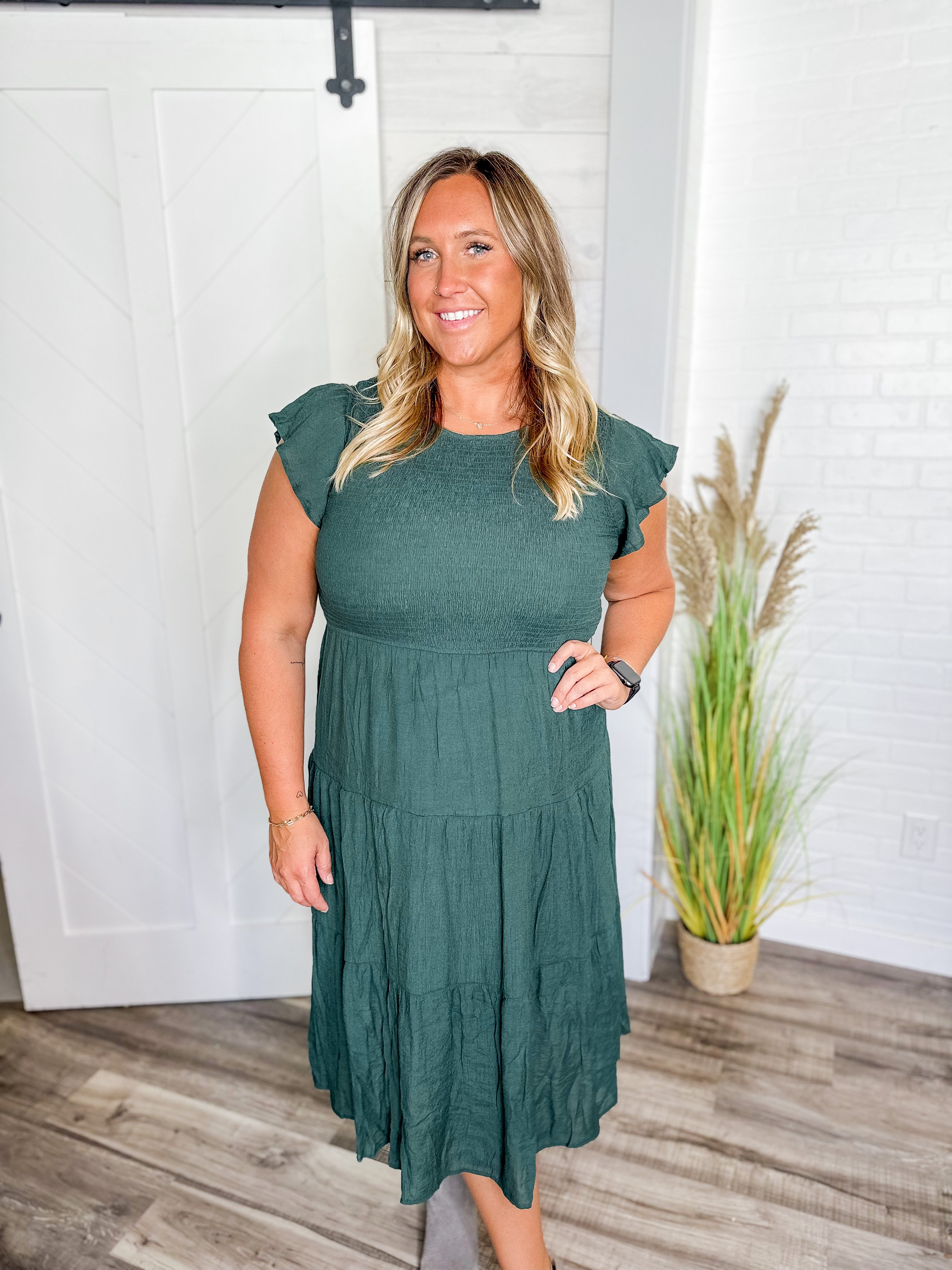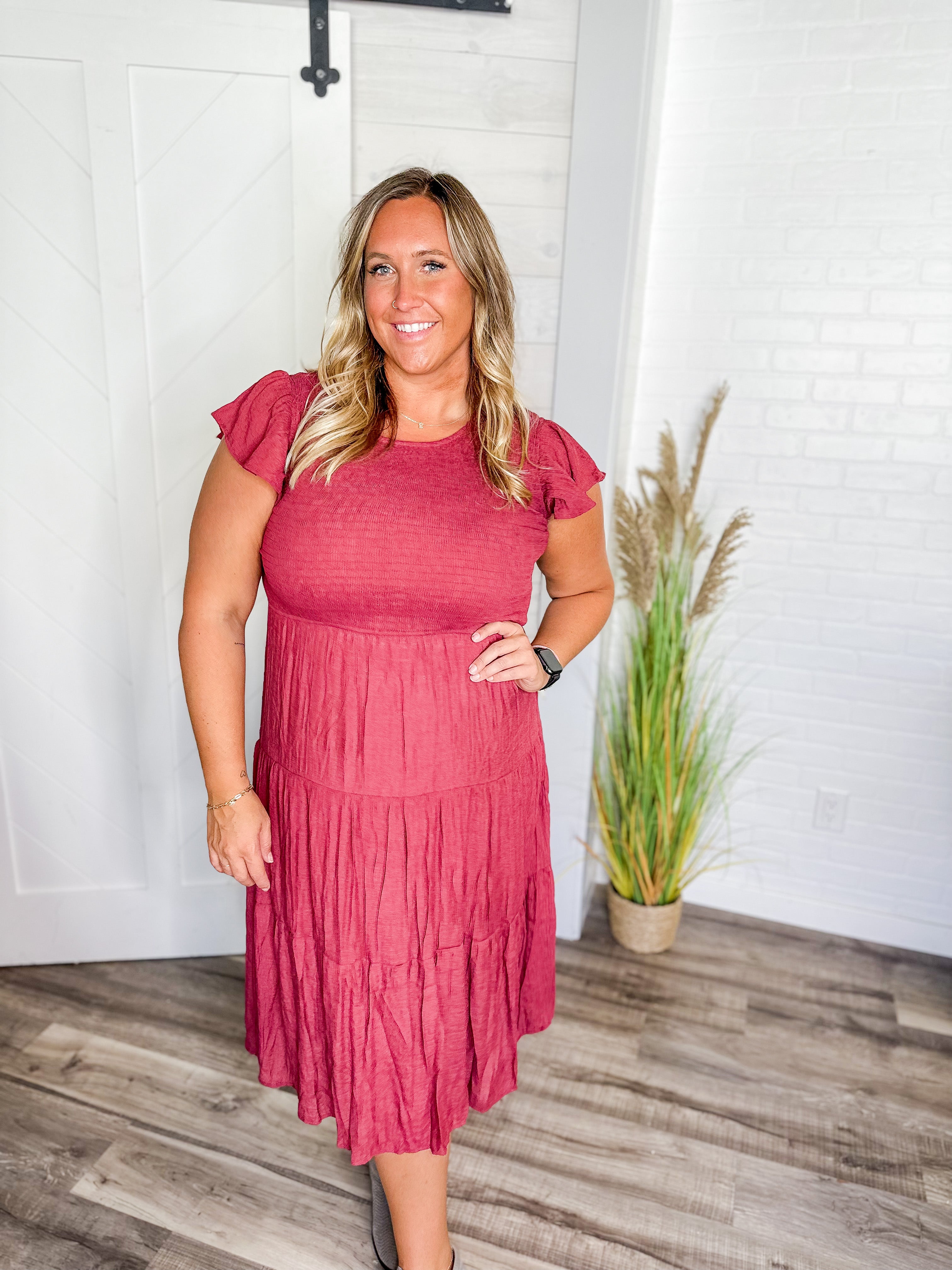 Your fall family photos aren't complete without this sweet dress! We love the ruffle sleeve, smocked bust, peasant skirt and lining that makes for a flattering and comfortable option for dressing up or down!