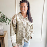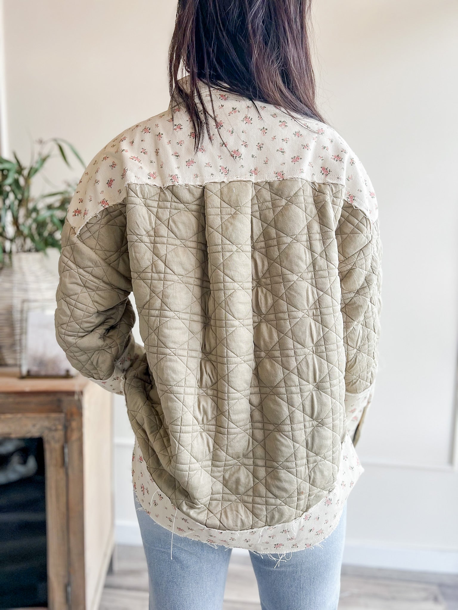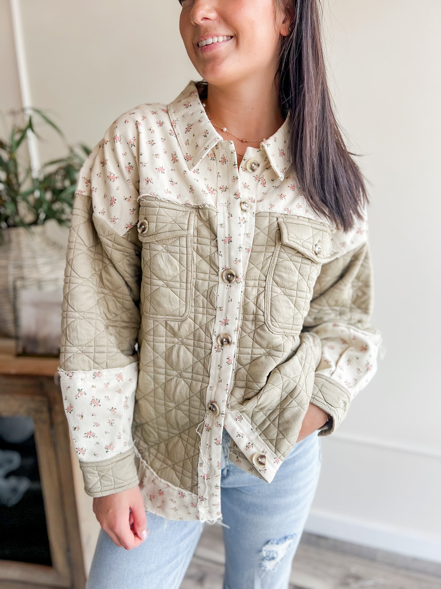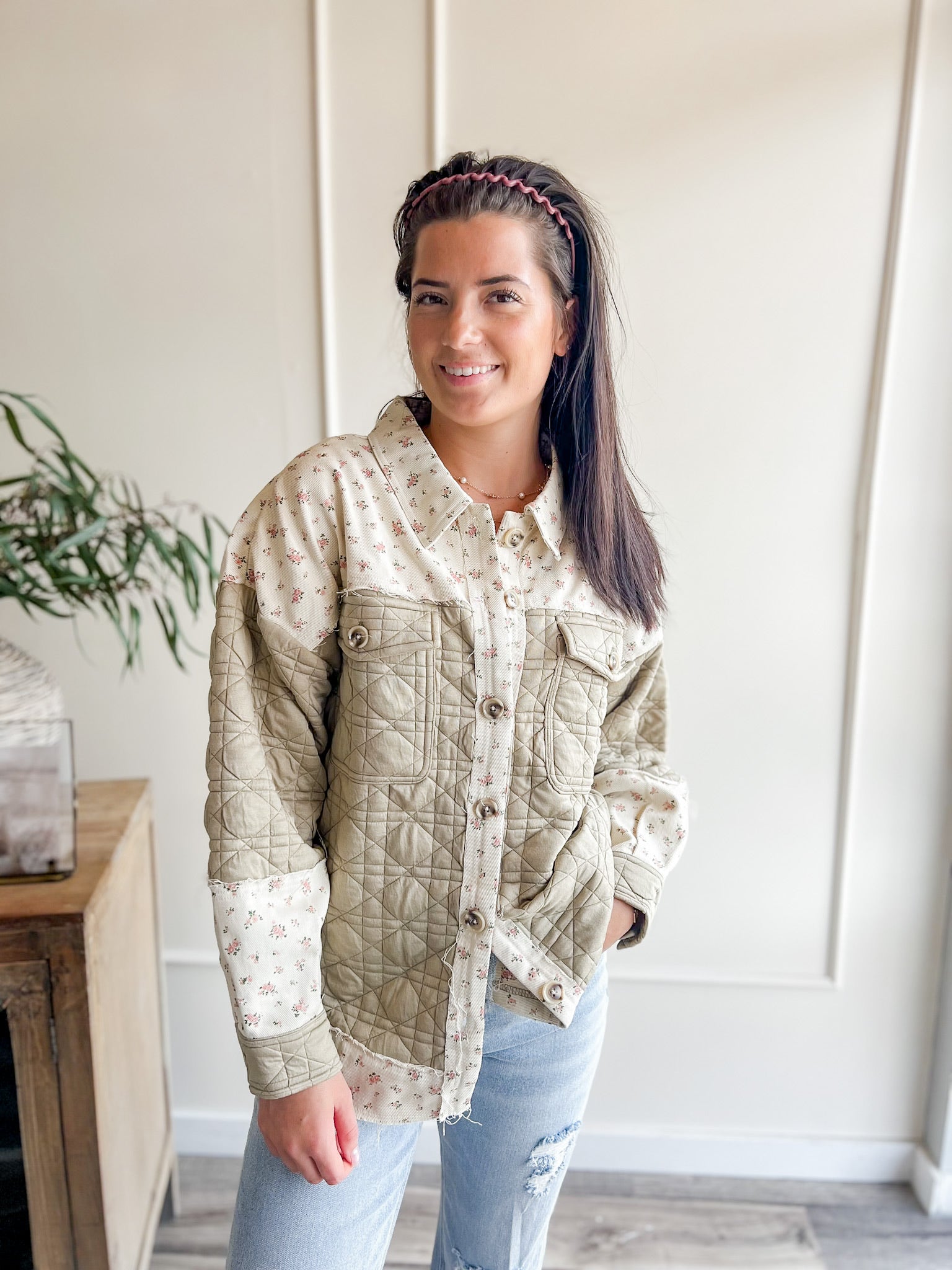 Sweet meets structured. This quilted shacket blends utility vibes with dainty florals for the perfect mix of cozy and feminine. Lightweight yet warm, it’s the throw-on-and-go layer your fall wardrobe needs. Chloe is 5’7” and wearing a size small.