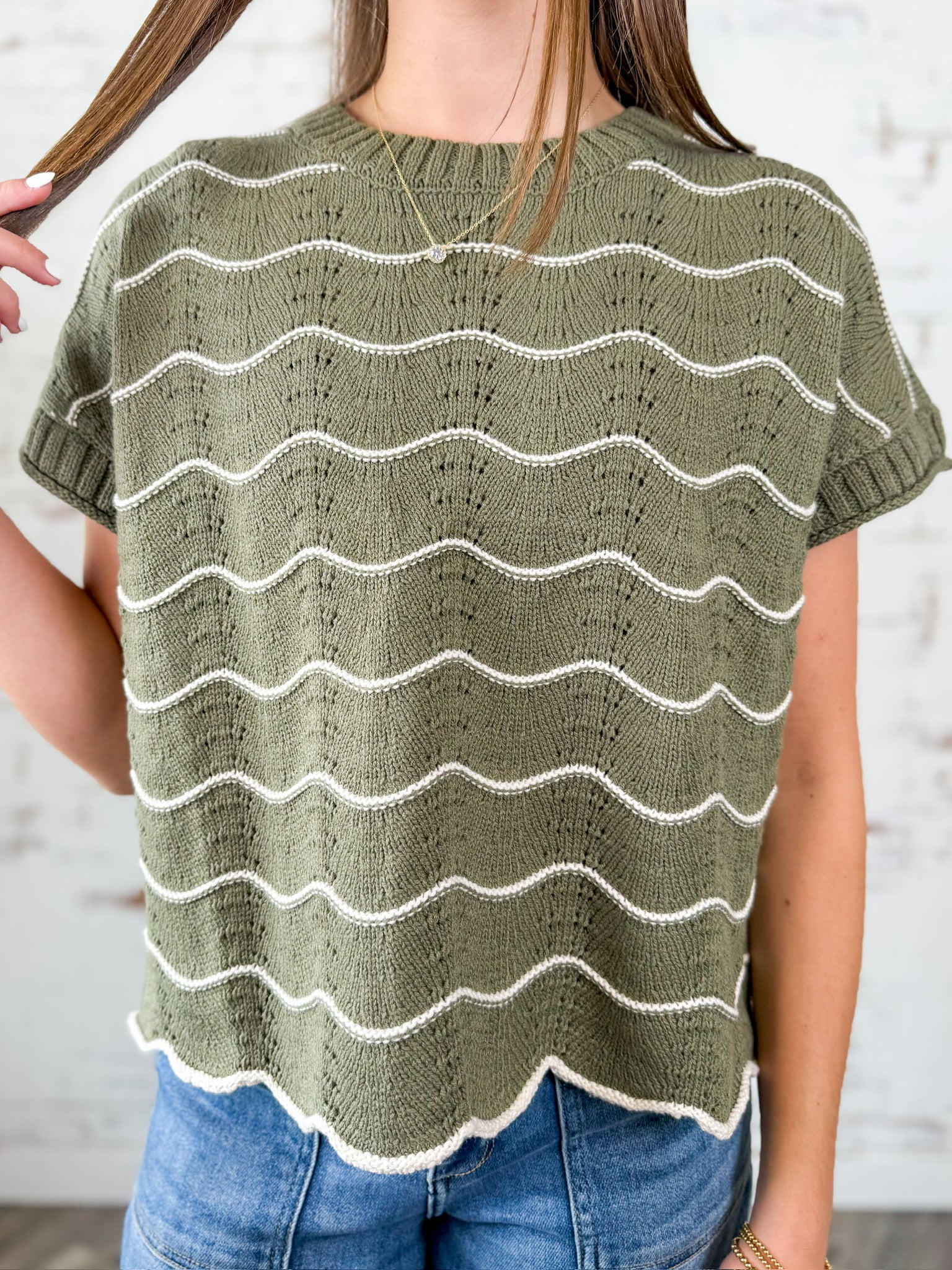 Sweet and easy with just a touch of charm—this scallop-hem sweater top is lightweight enough for sunny days yet cozy enough for layering.