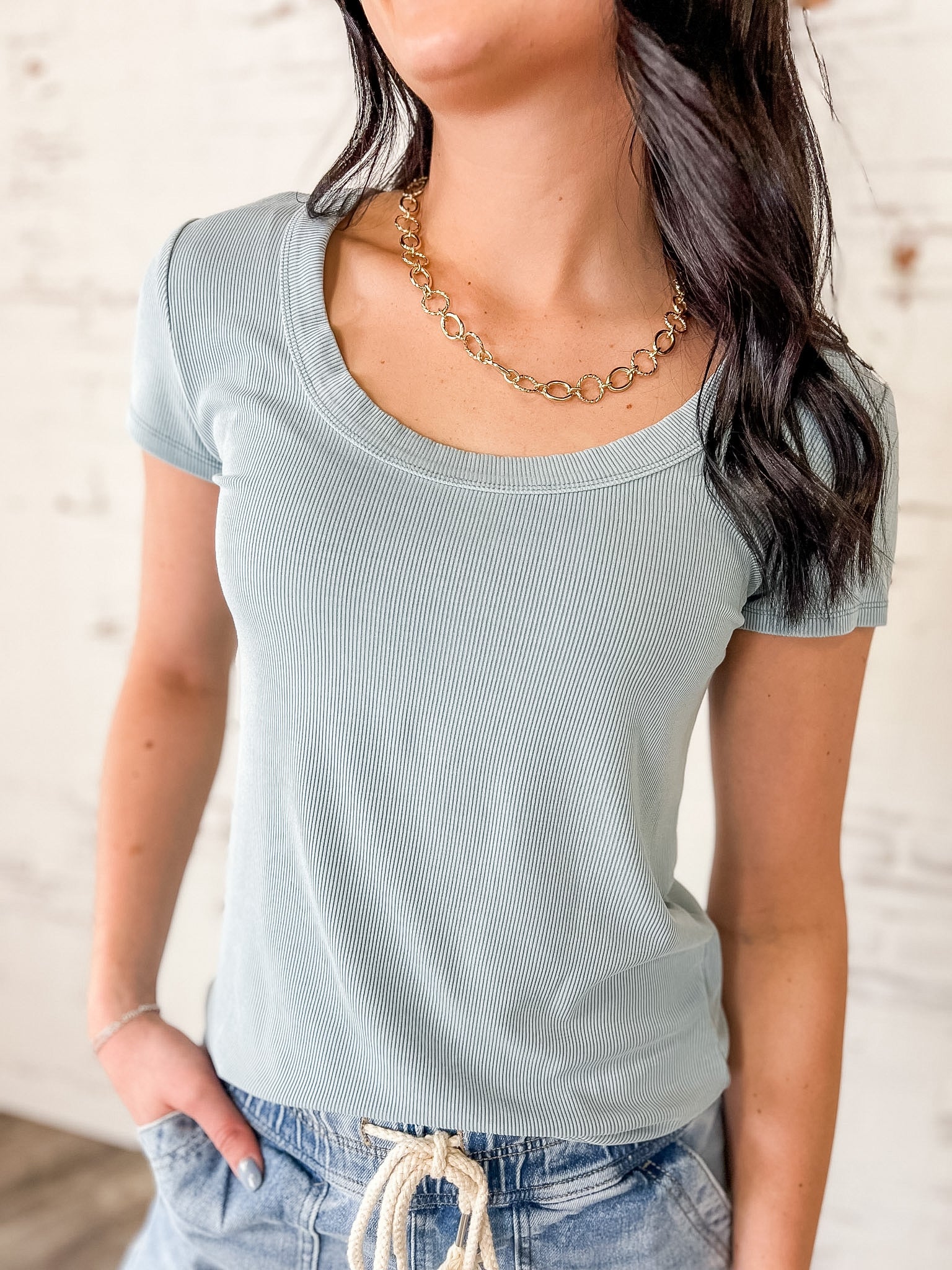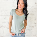 Meet the tee you’ll reach for on repeat. The Everyday Ribbed Scoop Neck Tee is one of those effortless basics that instantly pulls an outfit together while still feeling incredibly comfortable. The soft ribbed fabric offers the perfect amount of stretch and a flattering, close-to-the-body fit, while the scoop neckline gives it a feminine feel that layers beautifully with your favorite necklaces. It pairs seamlessly with denim, joggers, shorts, or skirts and works just as well on its own as it does layered under a jacket or cardigan. This is the kind of wardrobe staple that makes getting dressed easy.