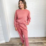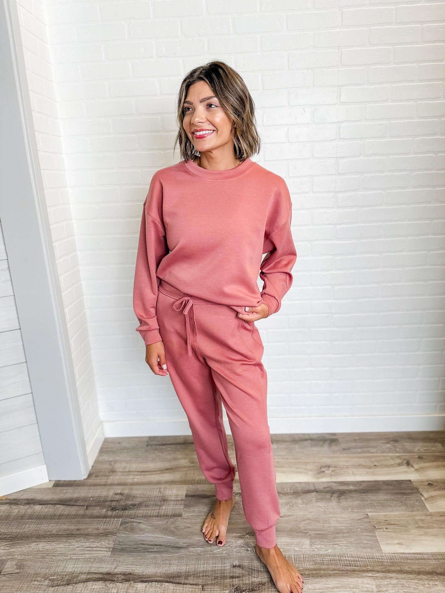Your new everyday uniform. This ultra-soft lounge set is the perfect blend of cozy and cute — made for errand days, travel days, and everything in between. Available in rose, grey, heather grey, indigo, cocoa, forest, brown, and blue. Rachel is 5’2” and wearing a size small.