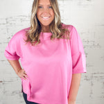 This relaxed short sleeve knit top is an easygoing essential designed for comfort without sacrificing style. With a slightly oversized silhouette and soft drape, it offers a flattering fit that moves with you through busy days and laid-back moments alike.
