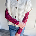 The Lace Mock Neck Long Sleeve Layering Top comes in two stunning colors — rich wine and soft champagne — making it an essential go-with-everything base layer. Chloe is 5'7 wearing her true size small, showing how beautifully it layers under knit vests, cardigans, and structured jackets while staying smooth and flattering.