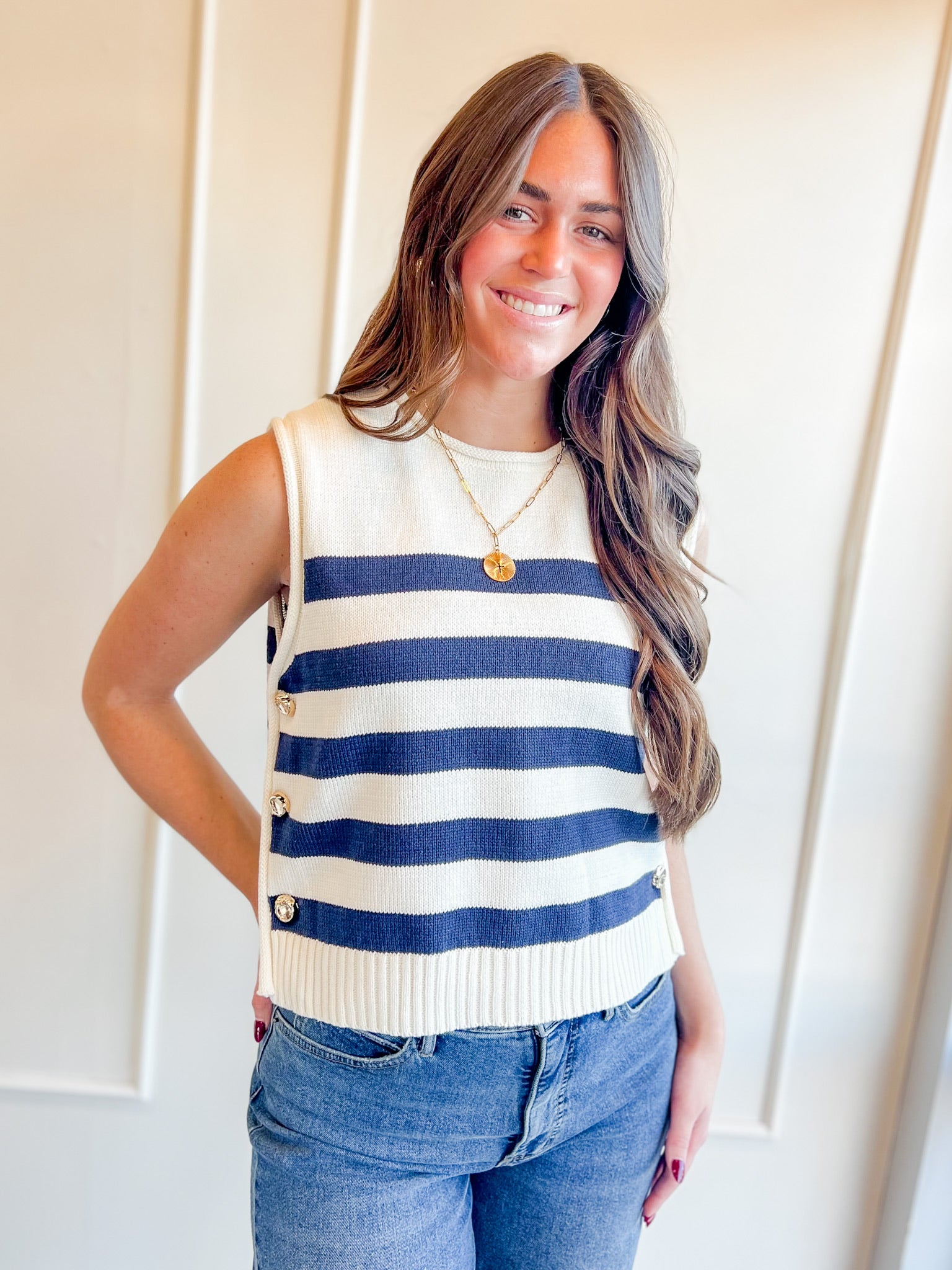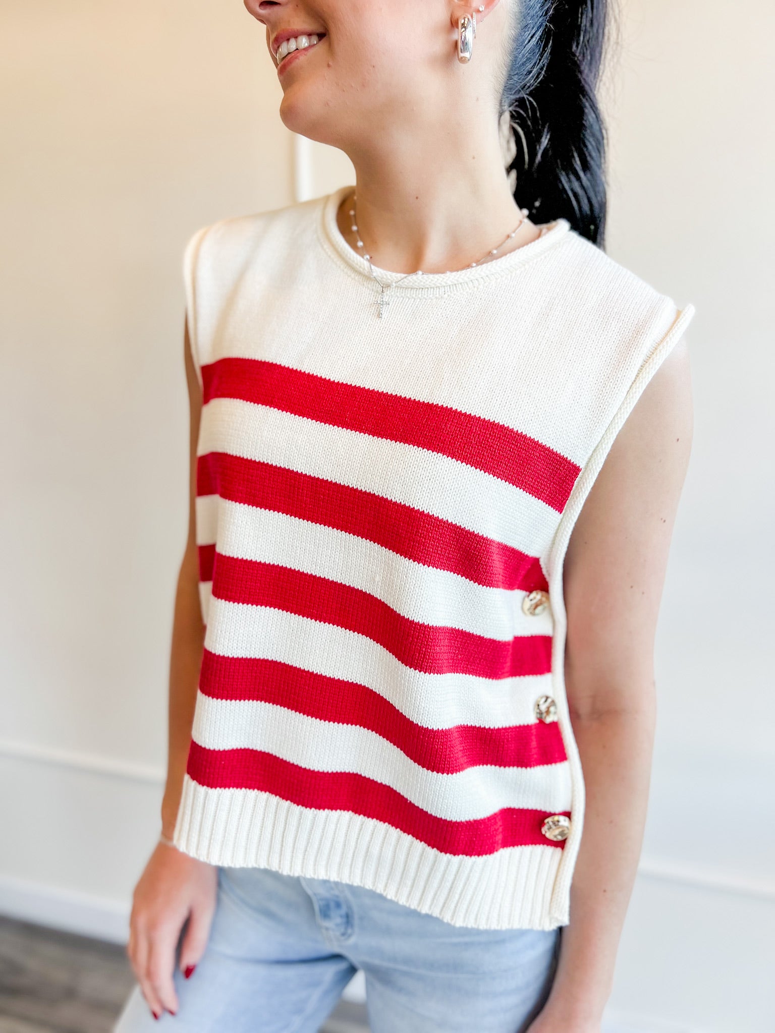 Coastal Stripe Button-Side Sweater Vest