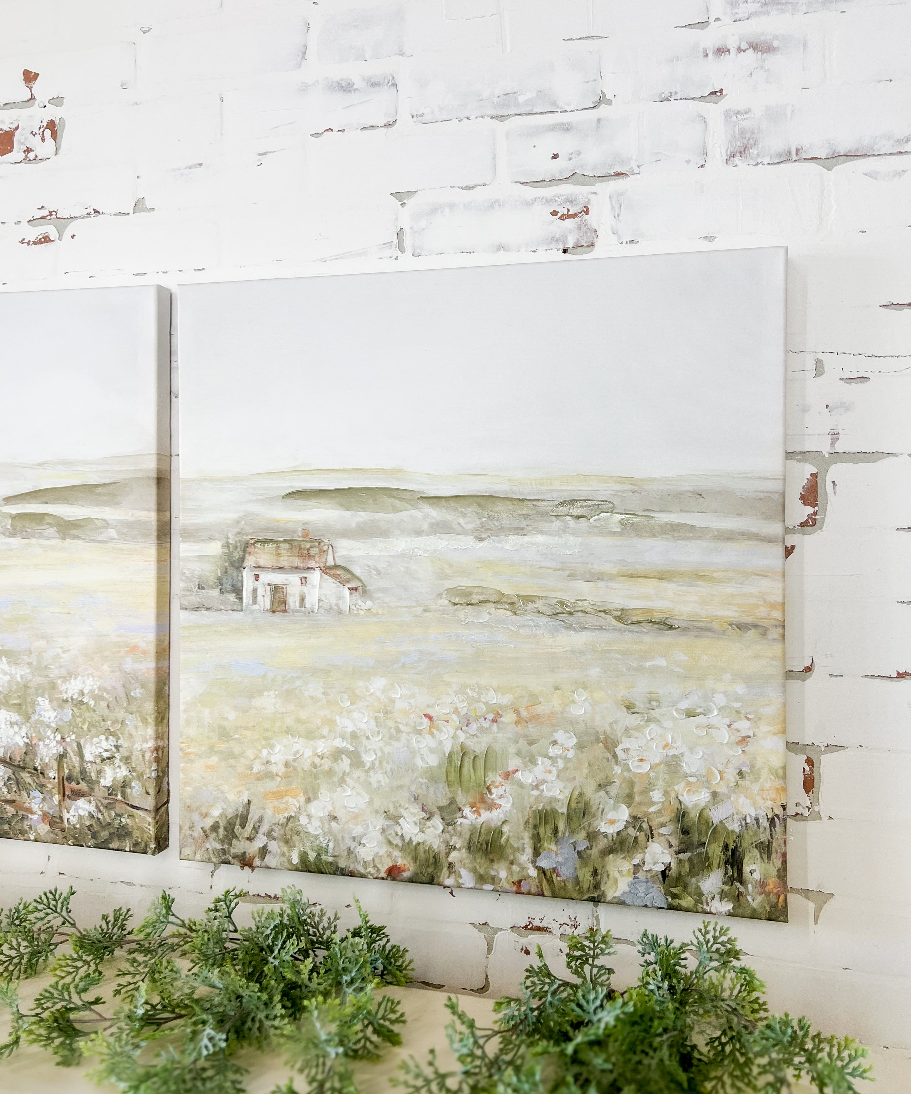 A soft, expansive scene that feels peaceful and grounded. This coordinating canvas set works beautifully over a sofa, console or bed and adds an effortless farmhouse touch.