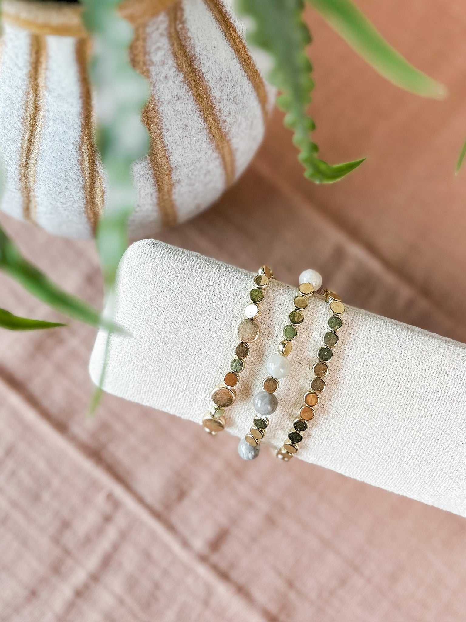 Stacked, stretchy and oh-so-stylish — these stone bracelets in gold or natural tones add just the right touch of effortless glam. Wear one for a hint of sparkle or stack 'em up for full-on bracelet party vibes!