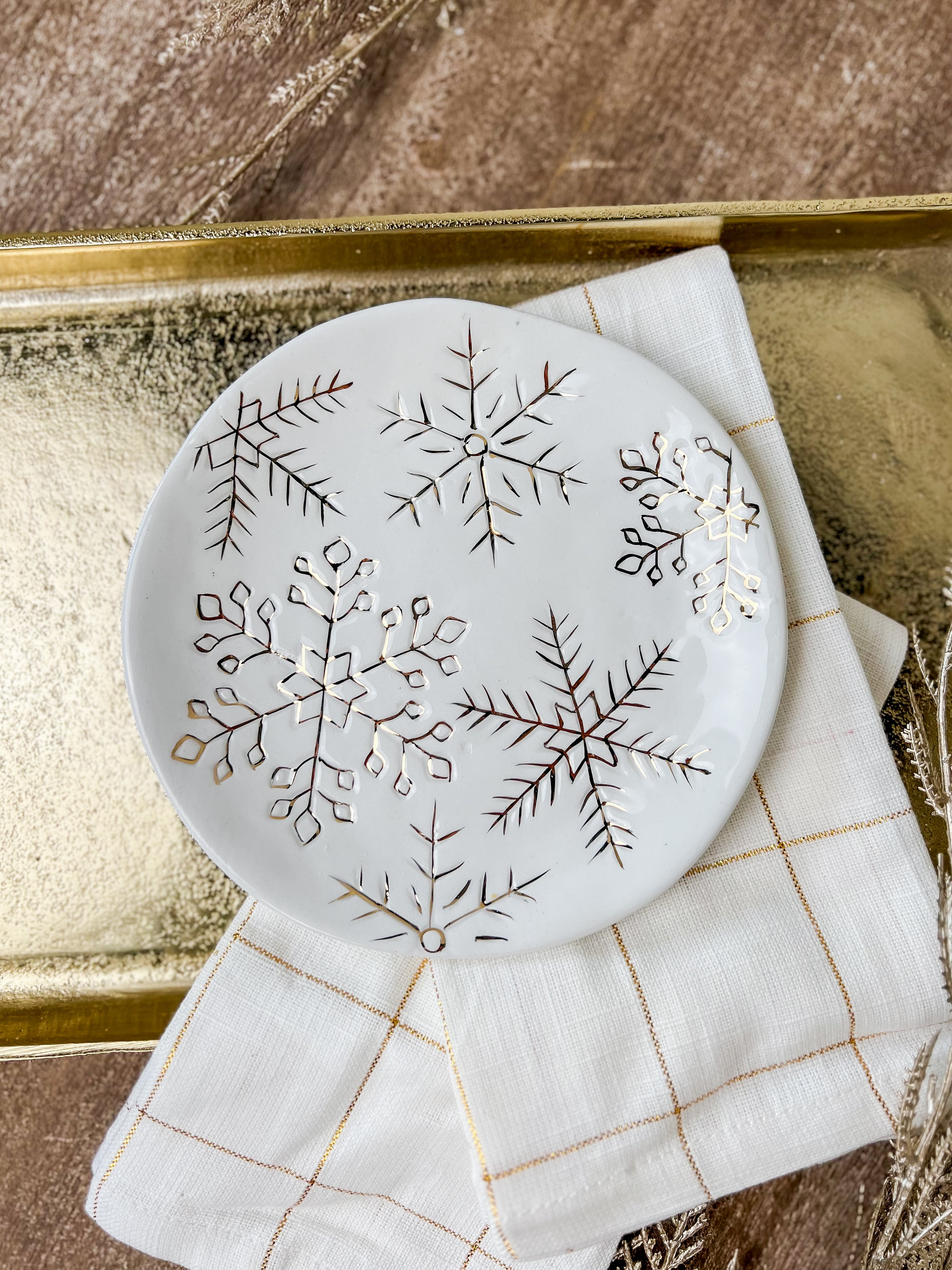 Round Stonewareplate With Gold Electroplated Snowflakes