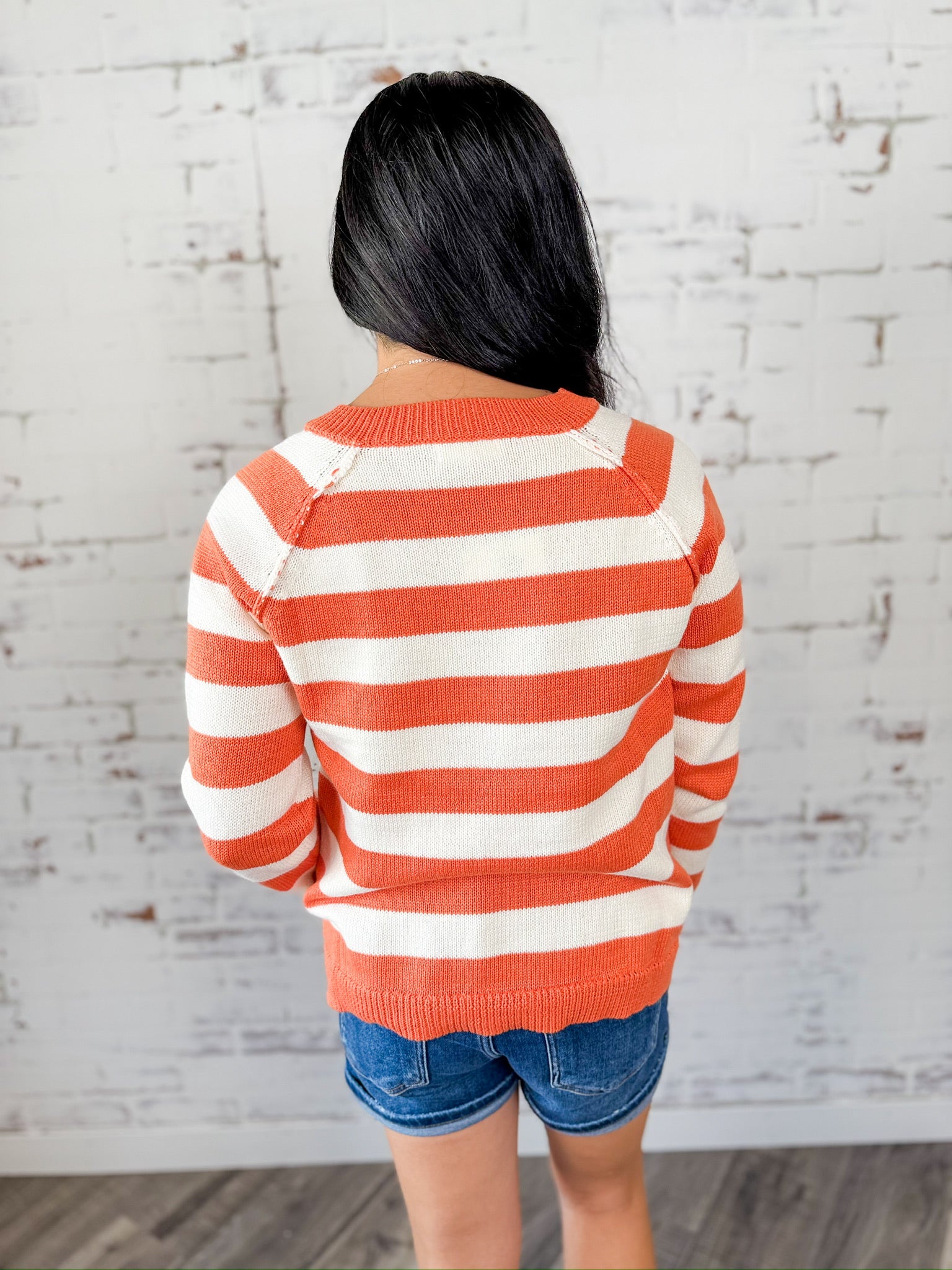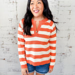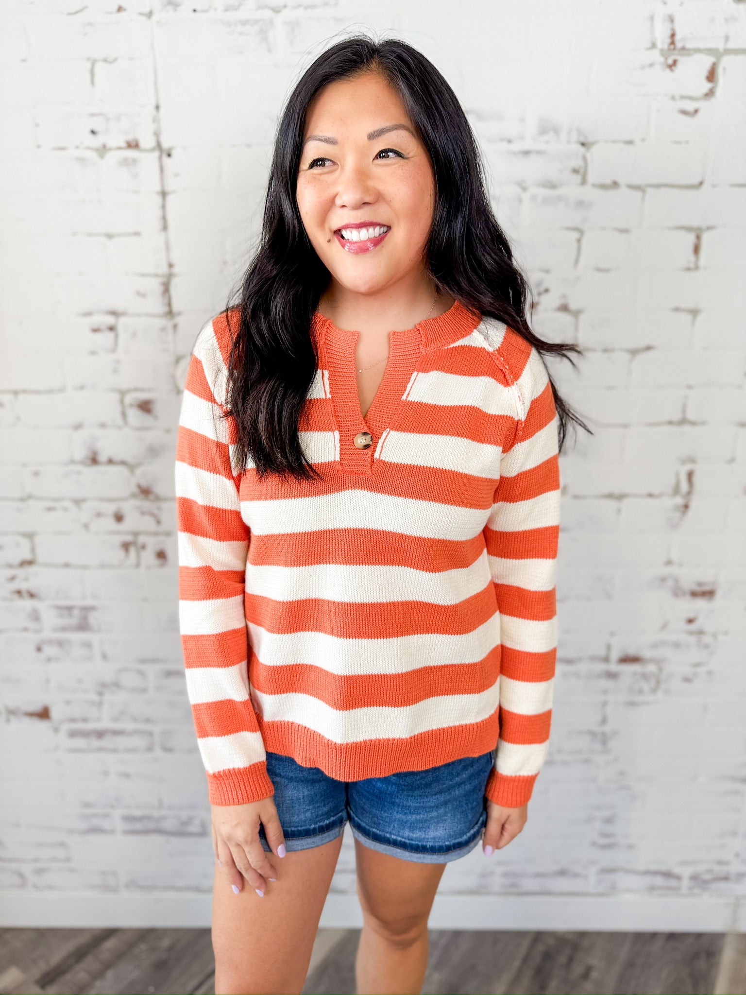 Bright and bold, this striped knit is a mood-lifter in sweater form. With a classic button neckline and cozy fit, it’s the perfect way to add a pop of fun to your everyday look.