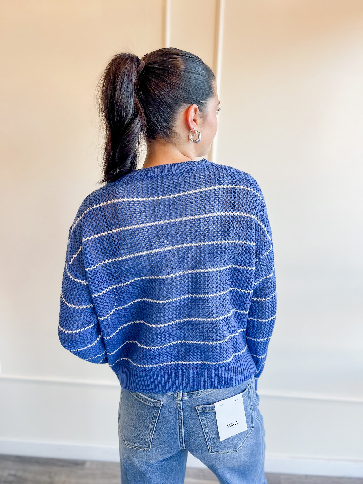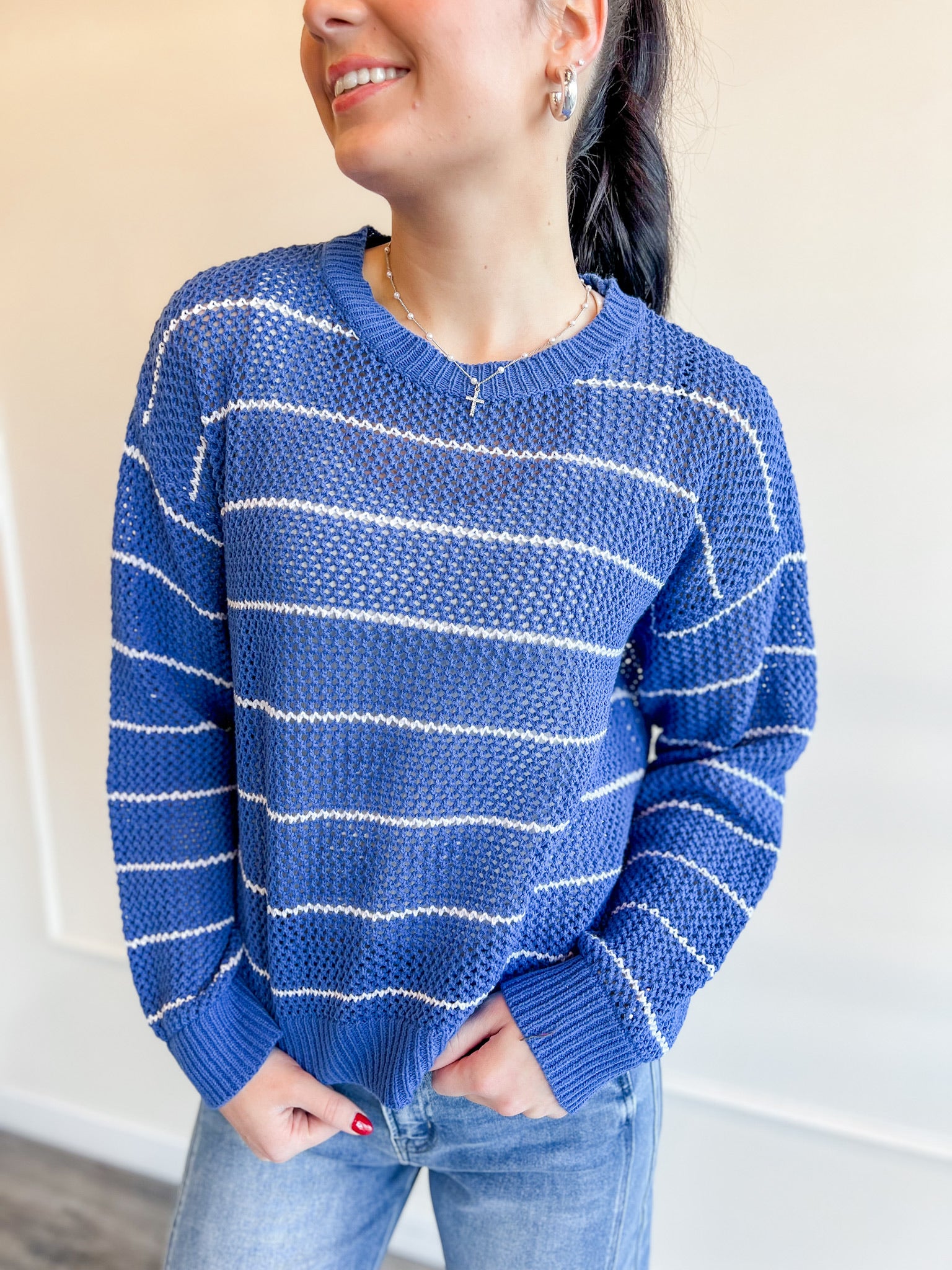 This striped sweater is the kind of piece that makes everyday outfits feel a little more styled without adding any extra effort. Lightweight with an easy drape, it’s perfect for layering during transitional weather or wearing on its own for casual days. It pairs effortlessly with denim, shorts or dressed-up bottoms, making it a go-to option you’ll reach for season after season.