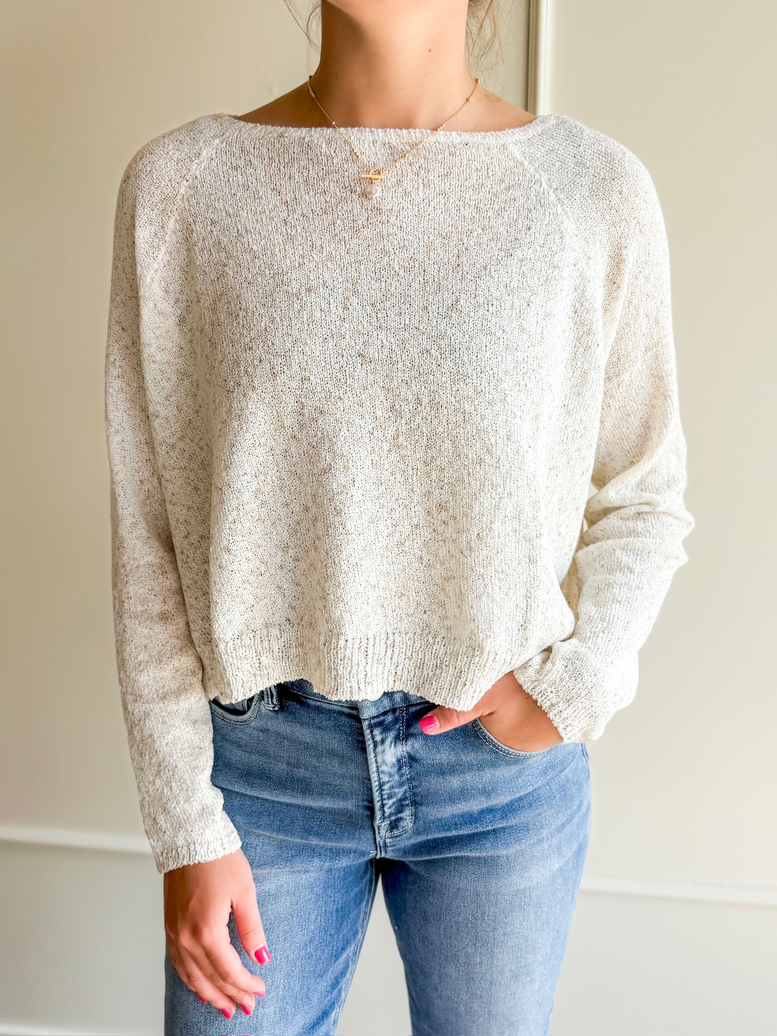 Lightweight, layerable, and just the right amount of cozy—The Almond Latte Sweater is a year-round staple. With its relaxed fit, subtle texture, and creamy neutral tone, this top plays well with everything in your closet.
