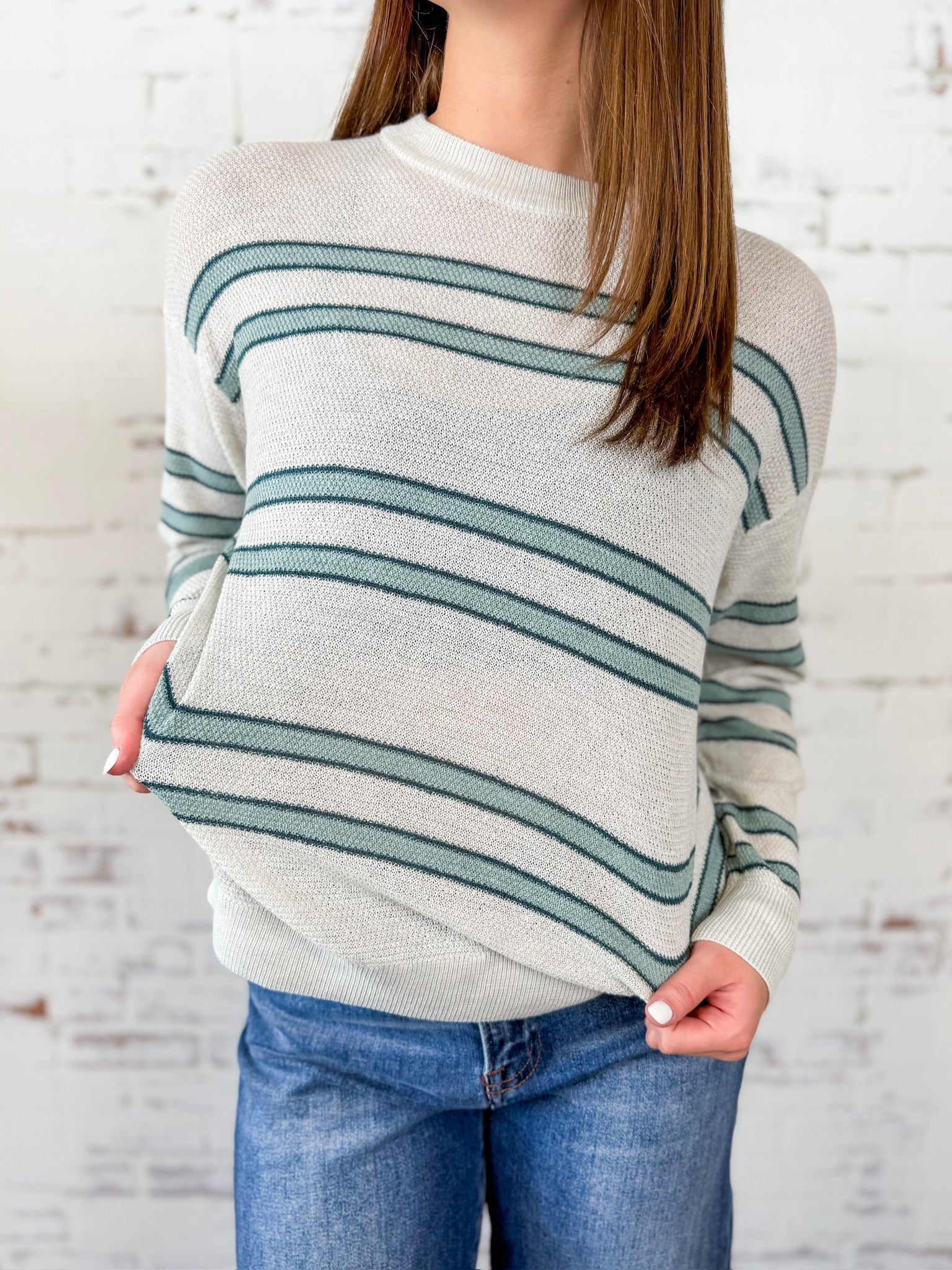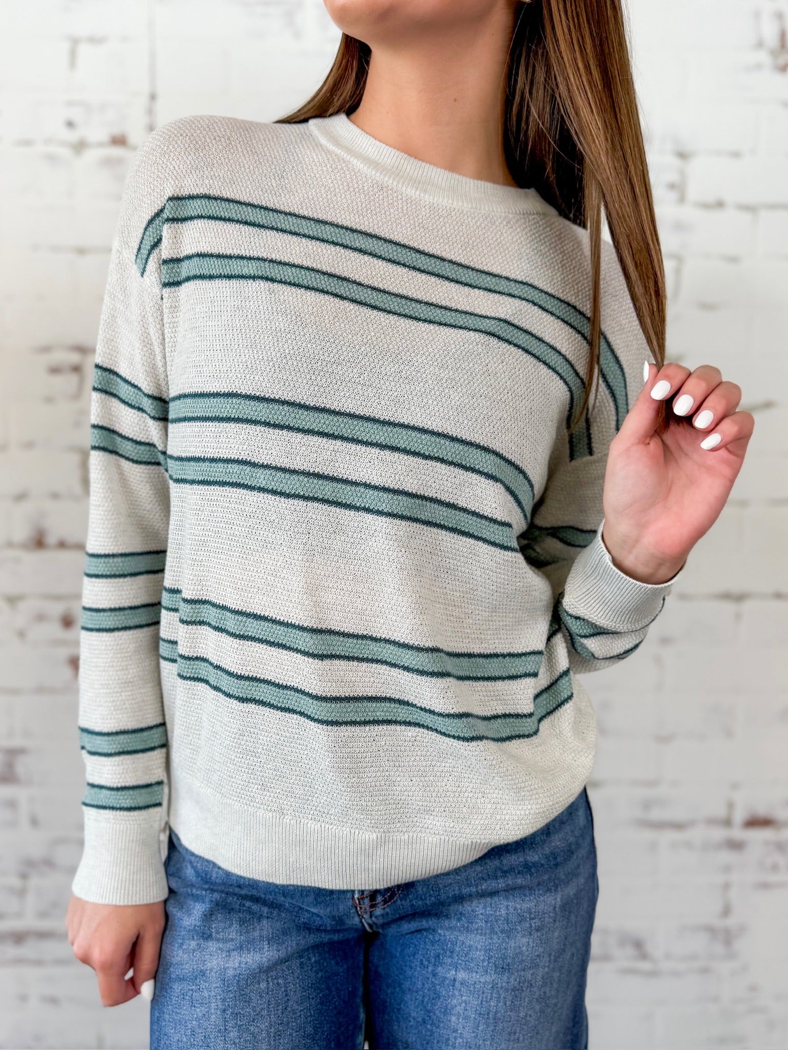 Classic stripes, modern comfort. This lightweight knit is the perfect piece for layering on breezy days while keeping your look effortlessly pulled together.