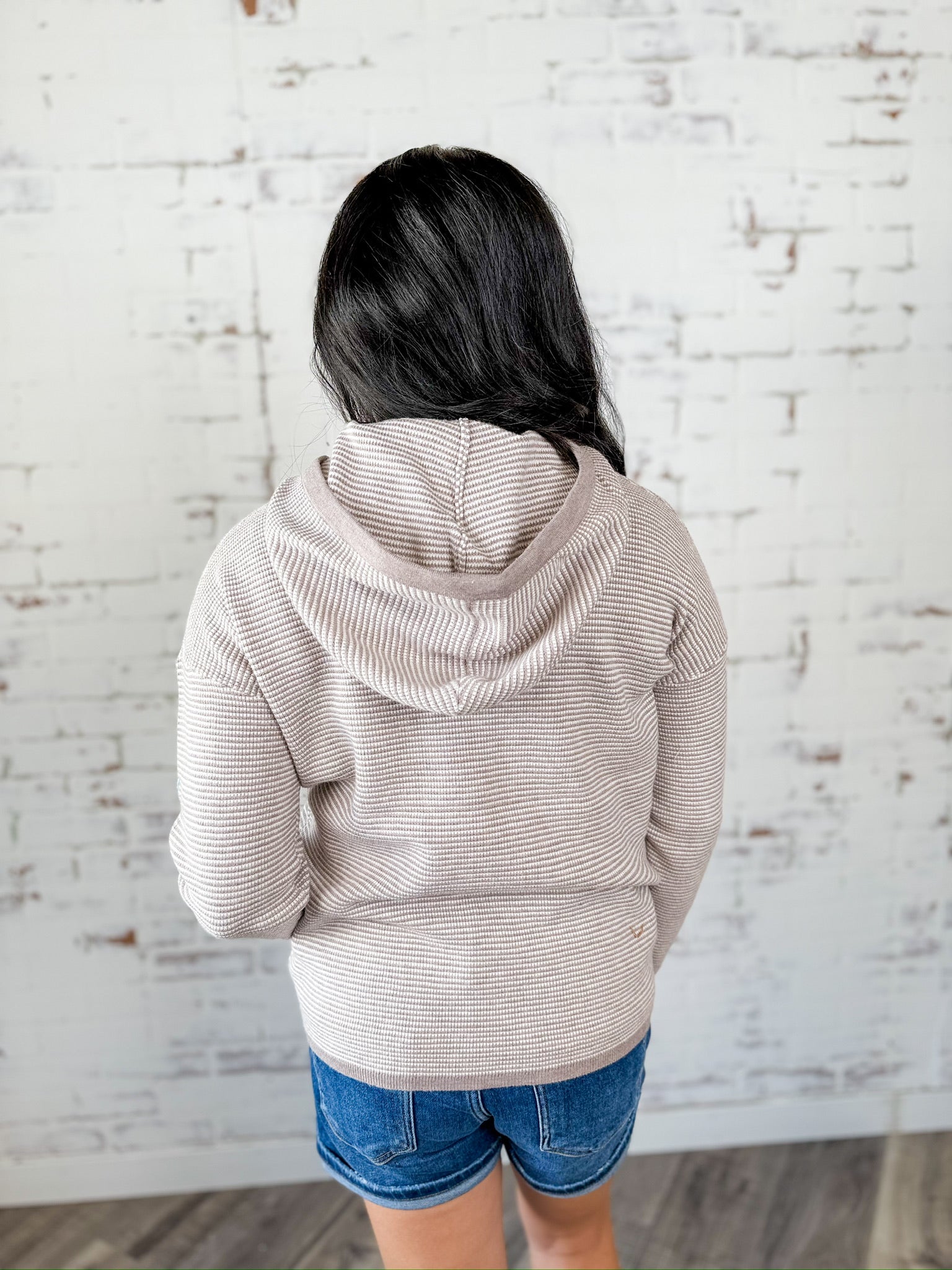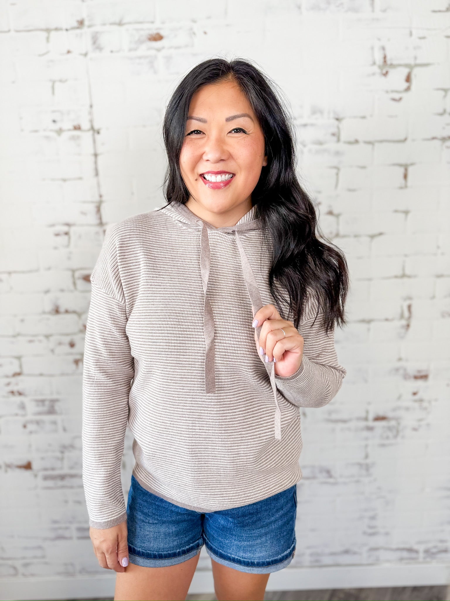Easy, lightweight, and ready for anything—this striped hoodie is your grab-and-go layer for everyday errands or weekend lounging.