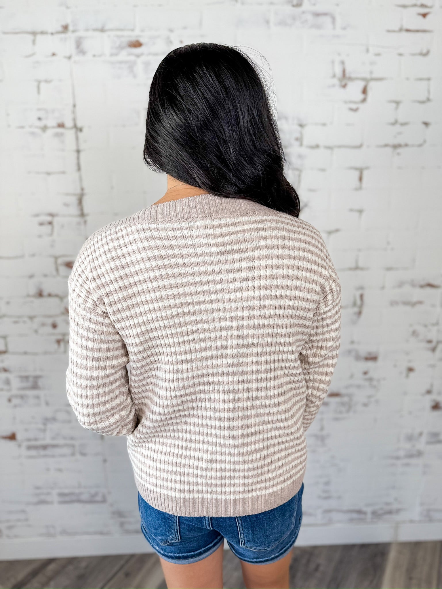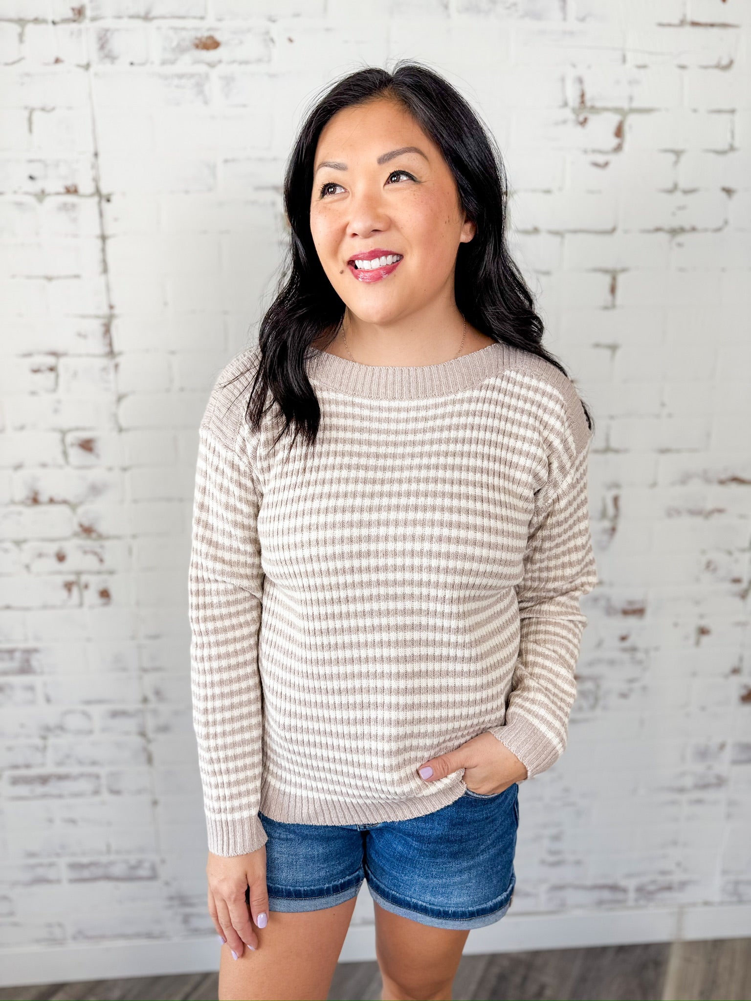 Classic, cozy, and so easy to wear—this striped knit is the perfect everyday sweater. Neutral tones keep it versatile, while the soft texture makes it one you’ll reach for on repeat.