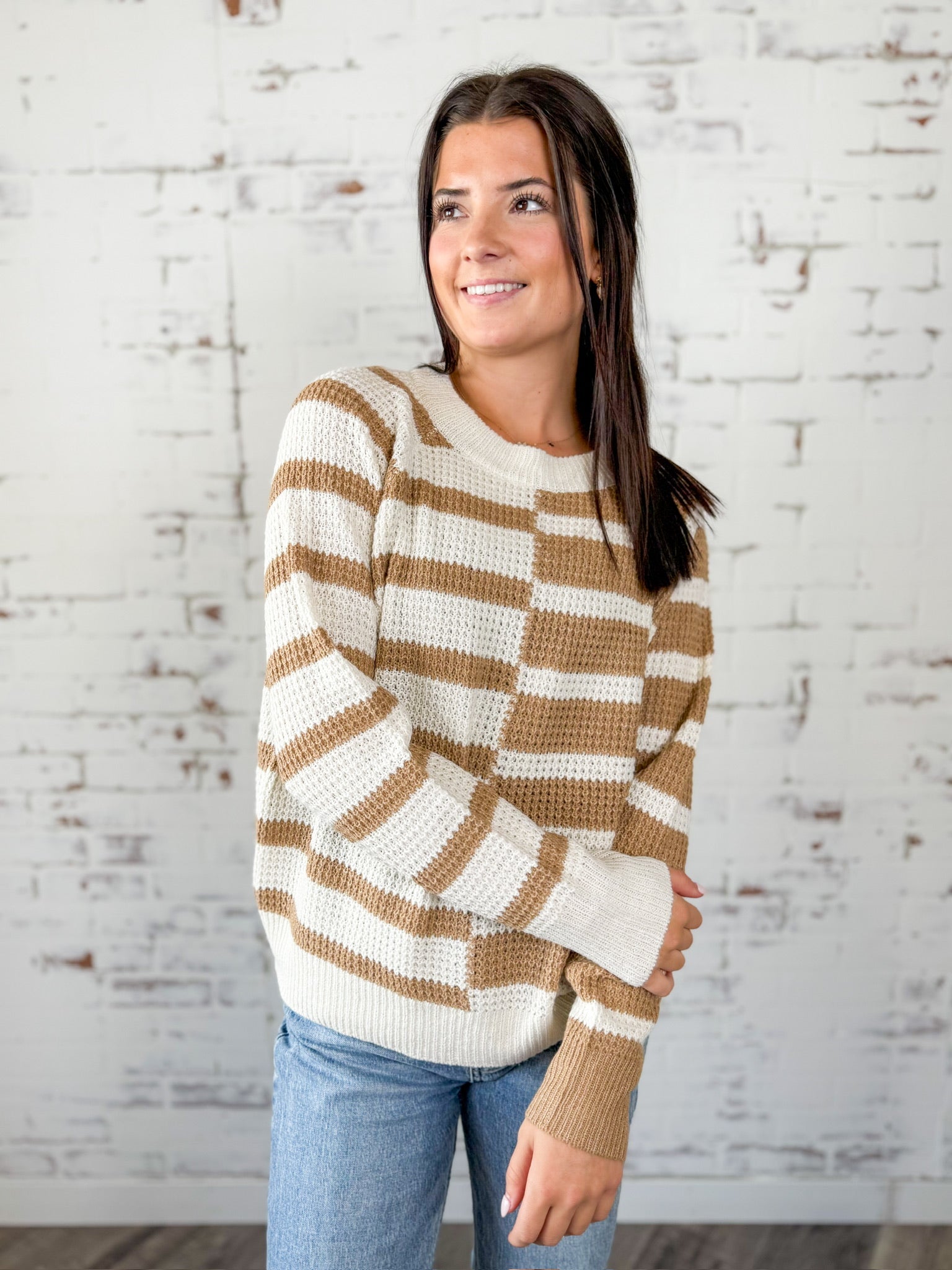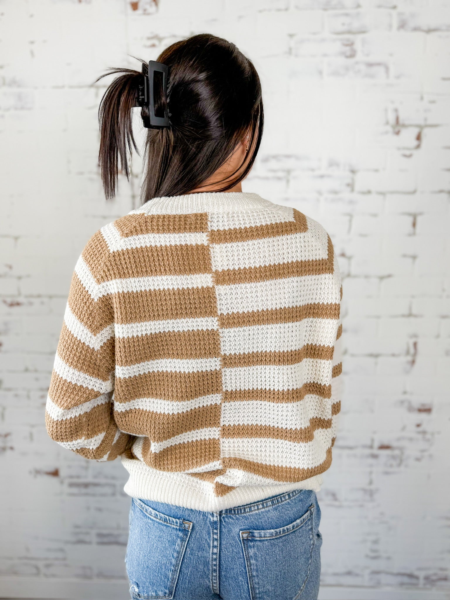 Classic stripes with a cozy twist—this knit sweater is the perfect balance of casual and chic. The neutral tones make it an easy everyday favorite you’ll reach for again and again.