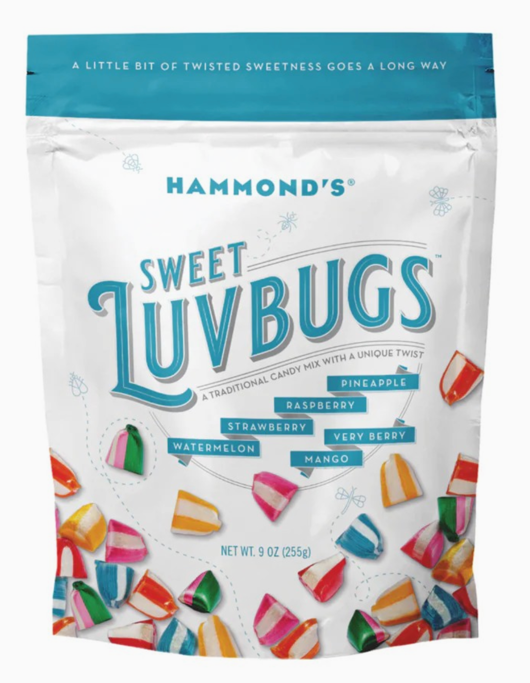 Hammond’s Sweet Luvbugs are a vibrant mix of traditional hard candies bursting with juicy flavors like watermelon, strawberry, raspberry, pineapple, mango, and very berry. Packaged in eye-catching 9 oz resealable bags, these whimsical treats are a visual standout and a flavorful favorite for impulse bins, gifting assortments, and everyday displays. They bring a playful twist to classic candy with broad appeal across age groups and seasons.