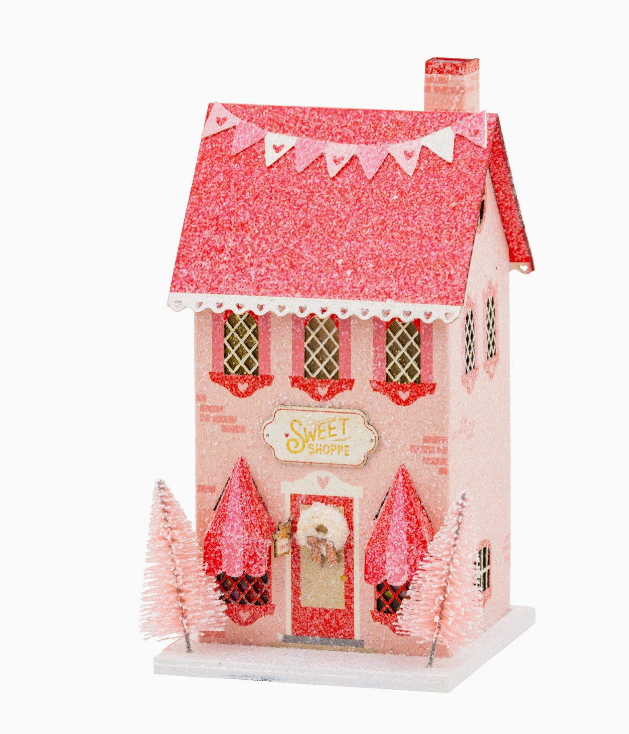 These light-up Valentine village houses are dusted with glitter and glow softly to bring instant warmth to your space. Designed to mix and match, each house is sold separately so you can build your own little village moment.