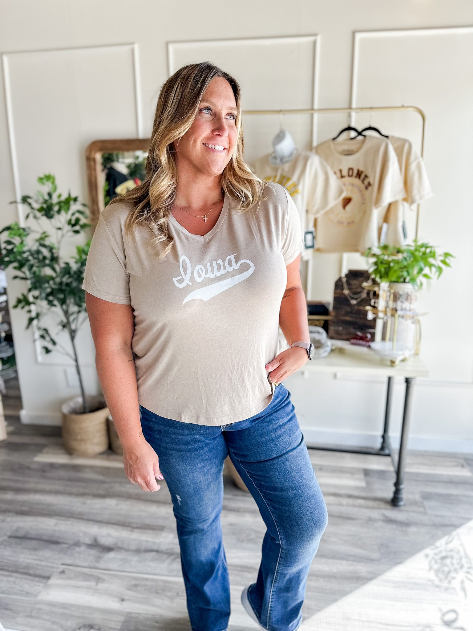 Rep your team in comfort and style with our buttery-soft bamboo tee, available in both Iowa State (ISU) and Iowa designs. Perfect for game days, errands, or everyday wear, this lightweight tee keeps you cool while showing your Hawkeye or Cyclone pride. Pair it with denim, joggers, or layered under a cozy jacket—this versatile staple will be on repeat all season long.