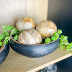Rustic with a twist. This carved wooden bowl features a rich natural interior and matte black exterior, bringing moody warmth to your shelf or coffee table vignette.