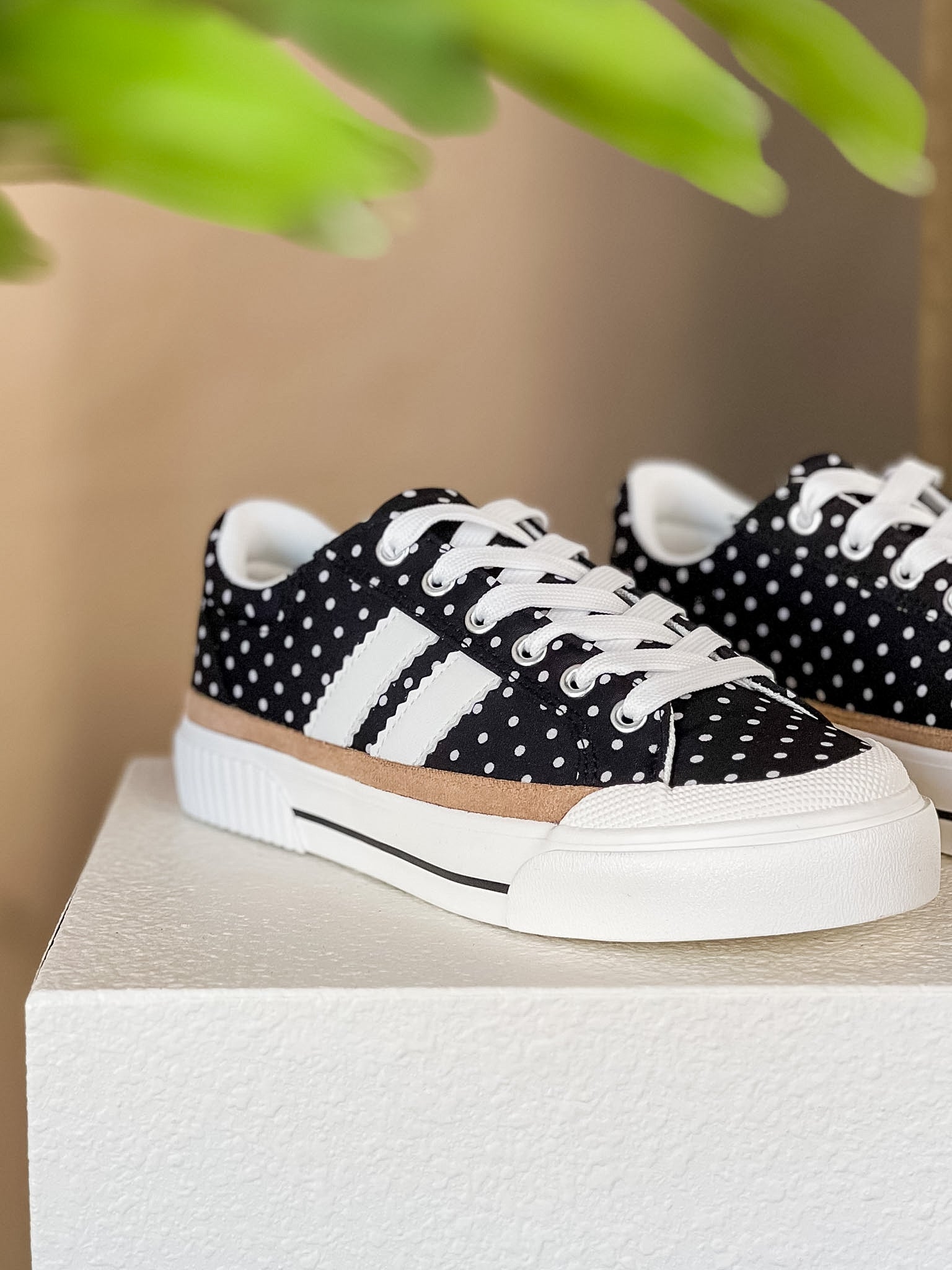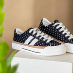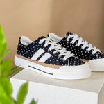 A classic sneaker with a playful twist. The Retro Dot Street Sneakers combine a timeless lace-up silhouette with a fun polka dot print that instantly adds personality to your outfit. The contrast stripes and vintage-inspired sole give them that effortless, sporty vibe that pairs perfectly with everyday denim.