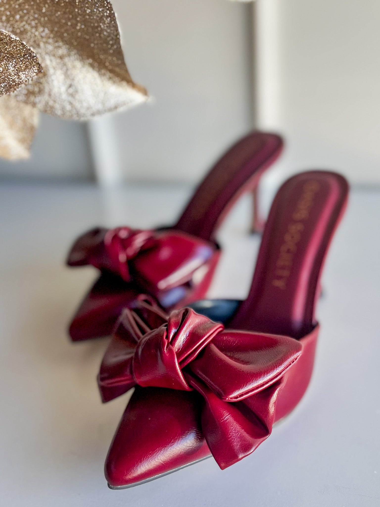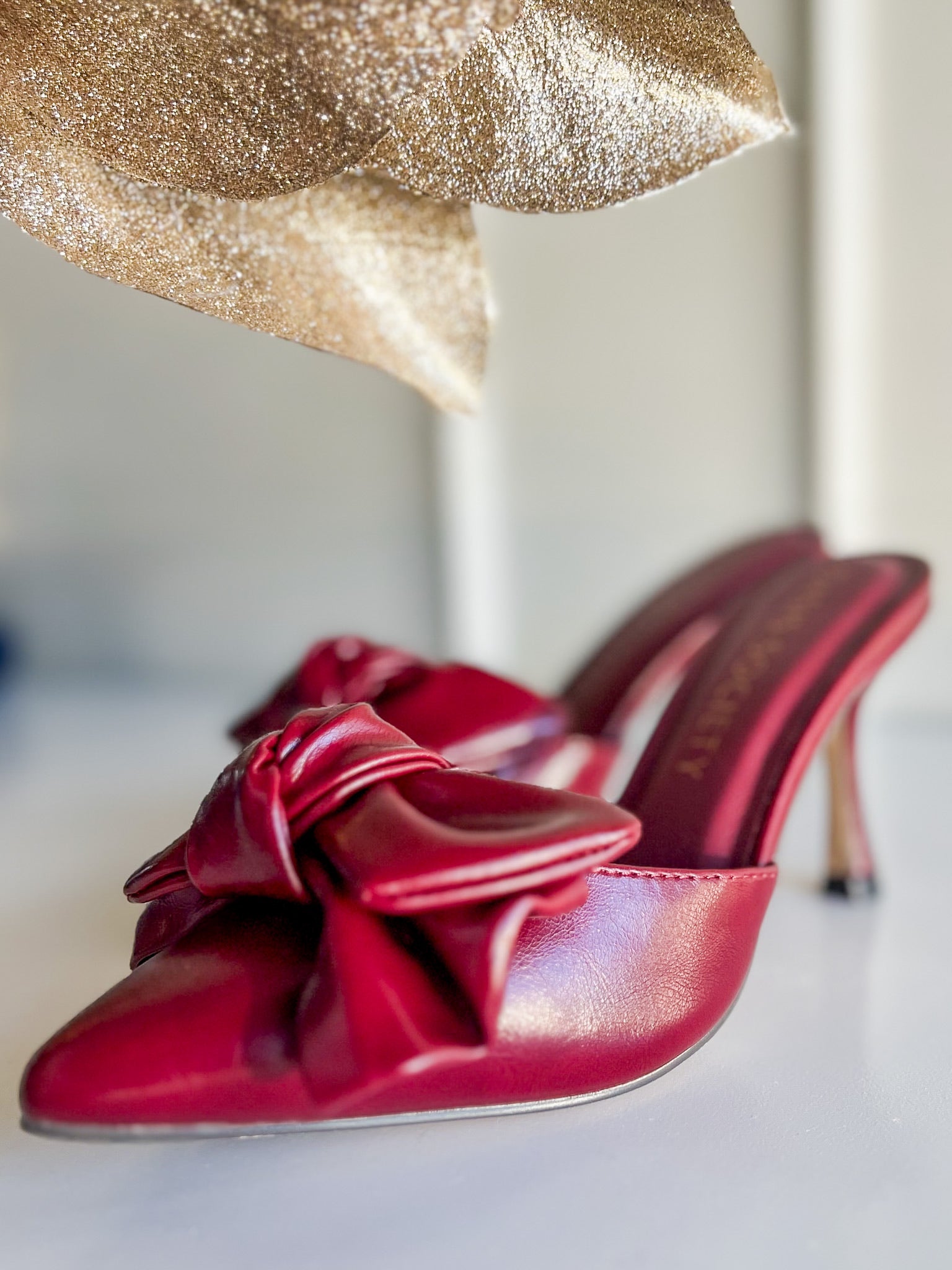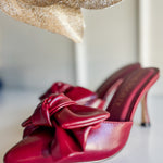 When you want a shoe that steals the spotlight without sacrificing comfort, The Jane Heel is your girl. This pointed-toe mule brings the drama with an oversized bow and a rich wine color that pairs perfectly with denim, holiday outfits, or your favorite dressy top.