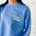 The relaxed fit and soft cotton fabric make this sweatshirt perfect for layering with denim, leggings or your favorite lounge bottoms. Whether you're running errands, heading to church or settling in for a cozy day, it’s an easy piece that pairs comfort with a faith-filled message.