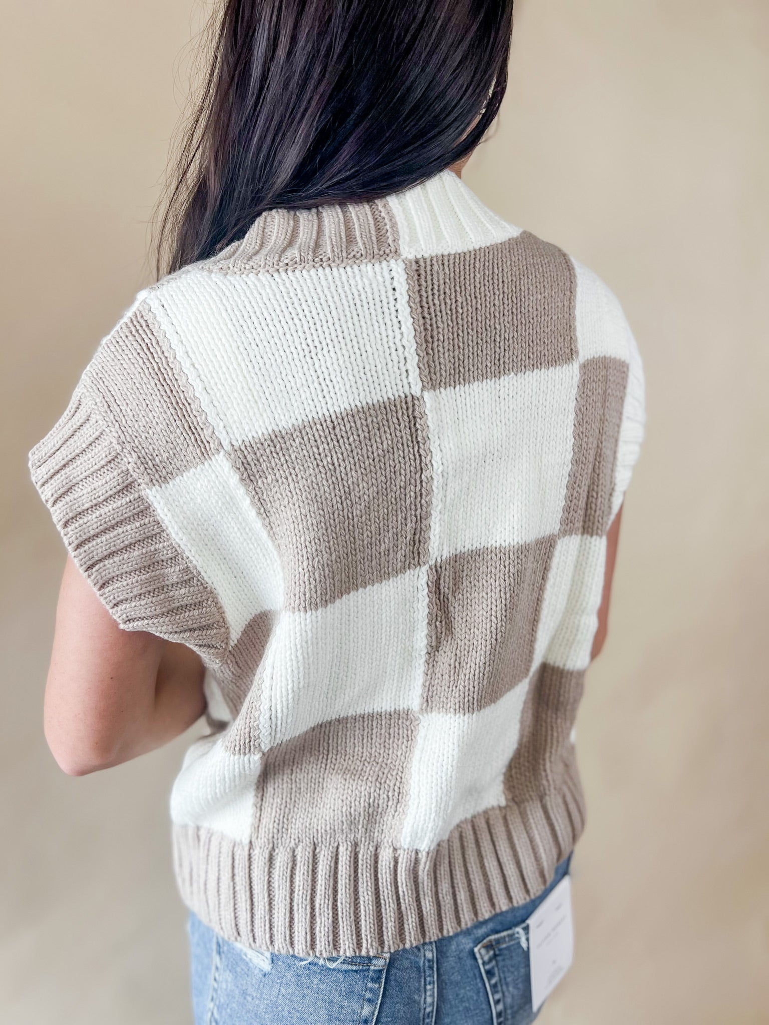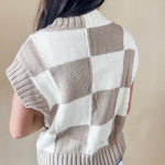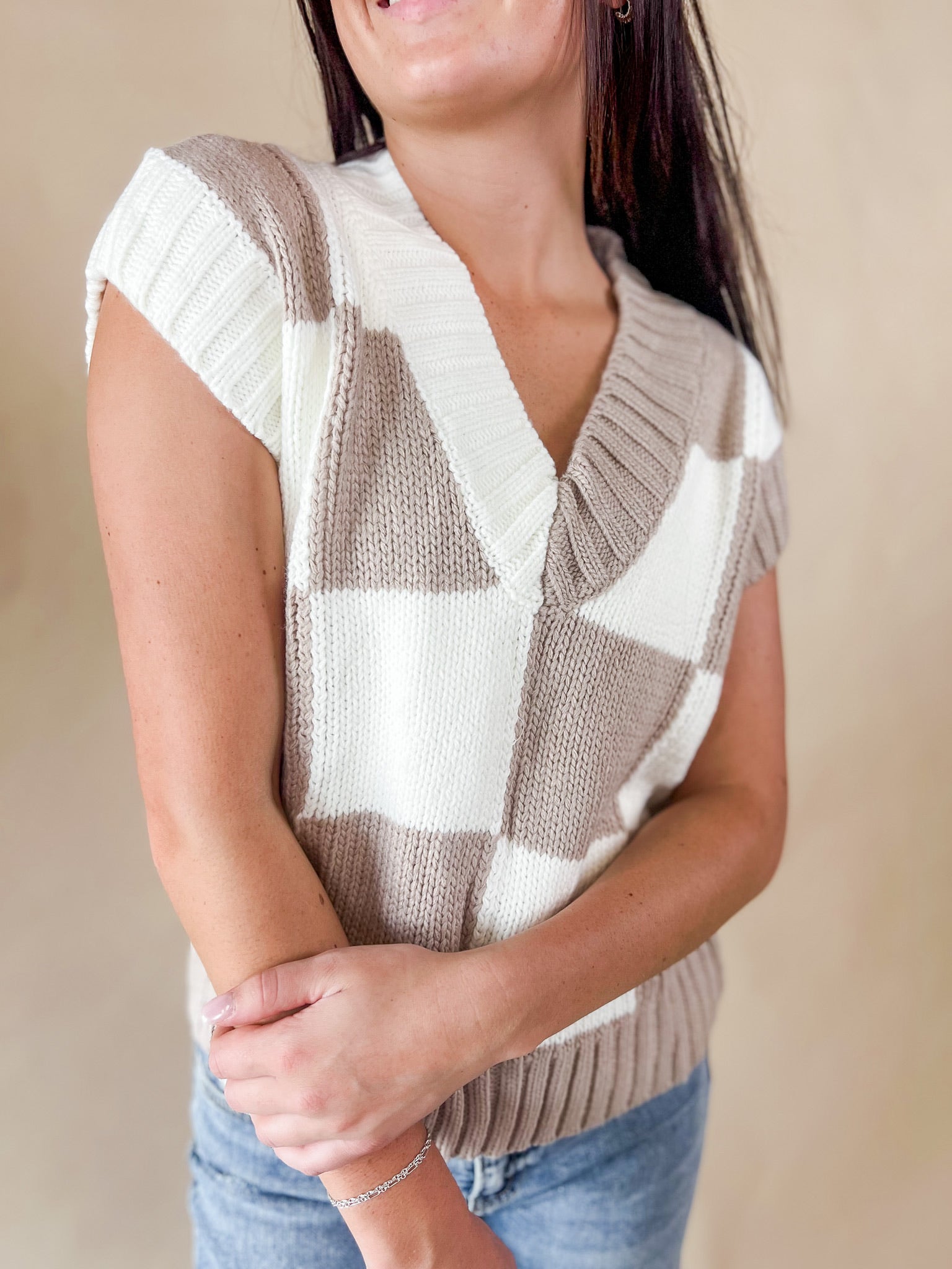 Checkmate, style. This bold checkered knit sweater vest is the easiest way to add some personality to your outfit. Soft, cozy, and perfect for layering or wearing solo. Chloe is 5'7" wearing a size small, and the fit is true to size.